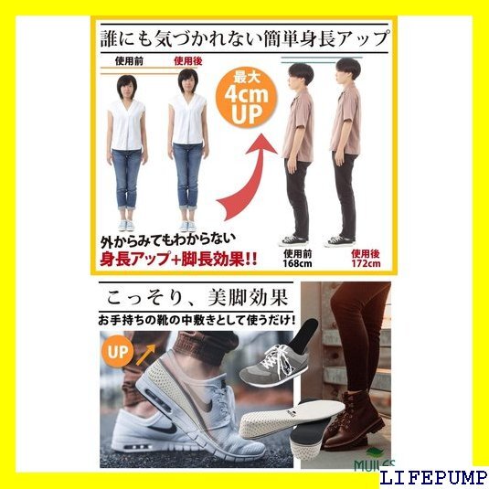 商品特長 身長が最大4cmアップ。身長を高く見せたい方、足を長く見せたい方におすすめです。