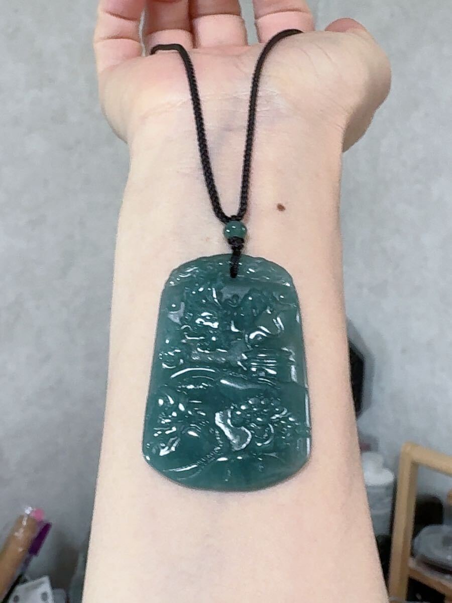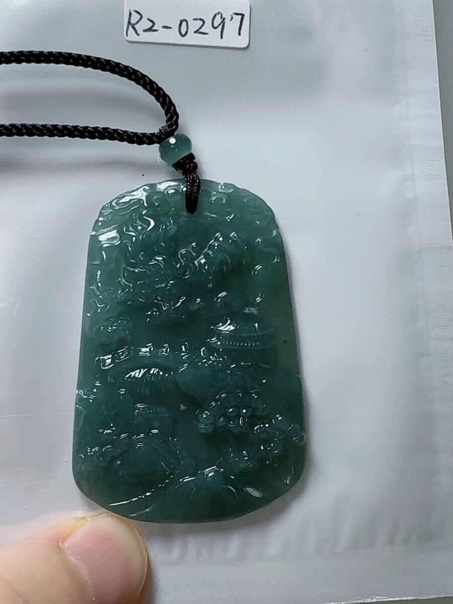 R2-0297天然本翡翠《本物保証》「山水」ペンダント 一品一図 高品質 一点物 魔除け 昇進 成功 風水 金運 財運 幸運 幸福 縁起物 パワーストーン