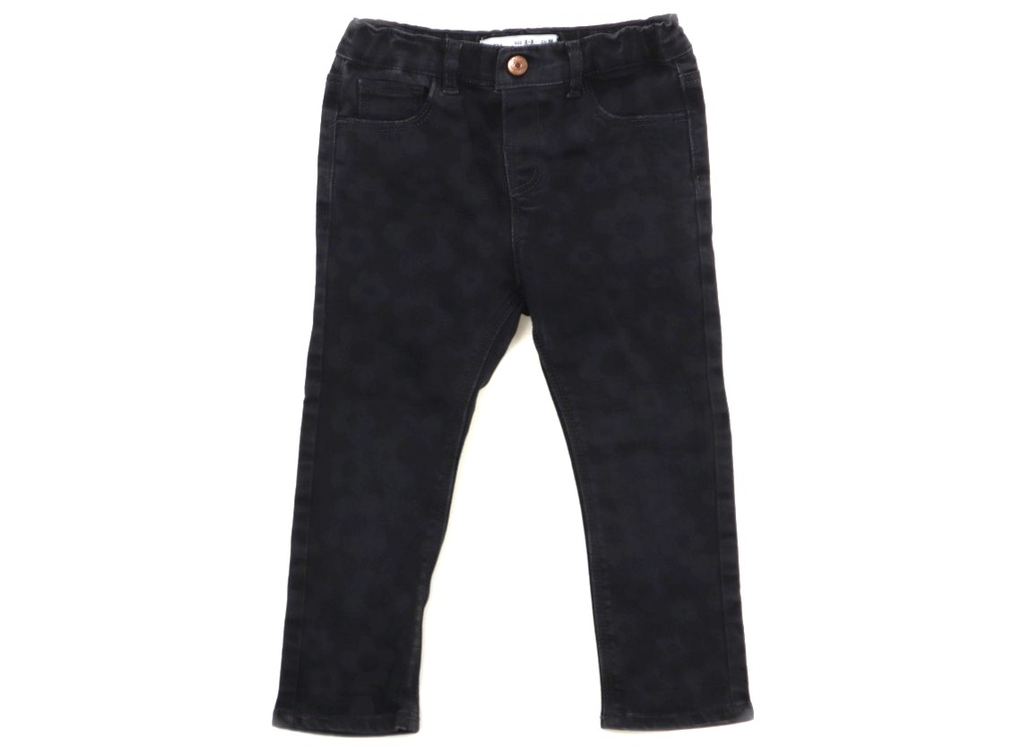 実際のサイズ表記は98cm。デニム地。サイズ調整ゴムが付いています。ウェスト周りに白い色褪せがありますが、まだお使いいただけそうです。