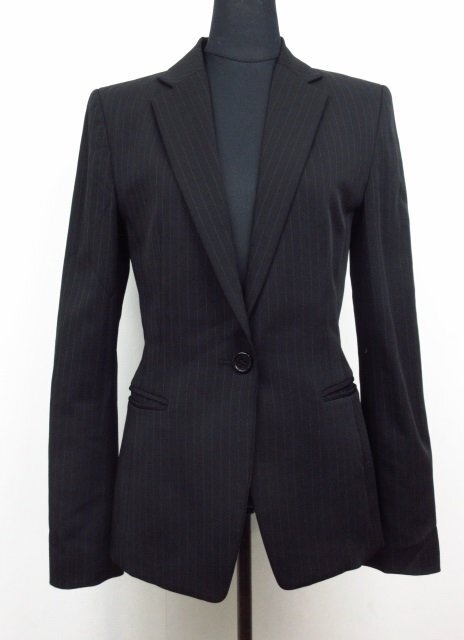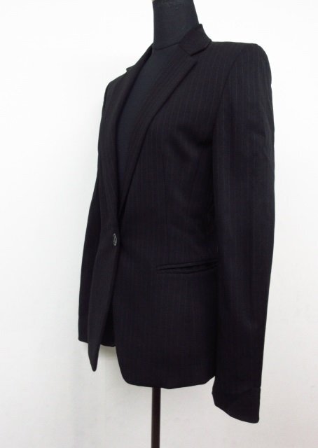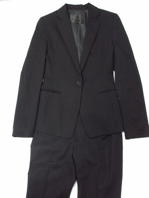 t2067 美品 アンタイトル パンツスーツ レディース ジャケット/パンツ ブラック/ピンストライプ サイズ1 日本製 UNTITLED ワールド