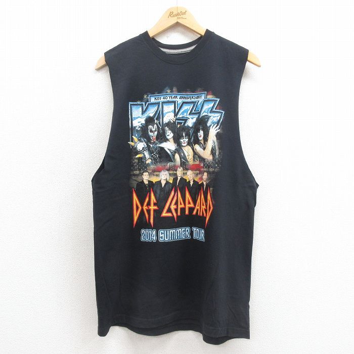 【商品名】 L★古着 ロック バンド タンクトップ メンズ キッス KISS デフレパード 黒【spe】