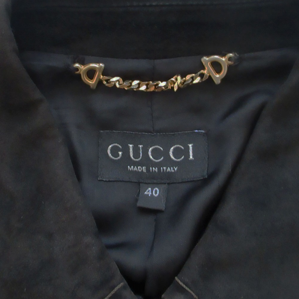 【GUCCI グッチ トムフォード期 ニット ジップアップコート スエード衿 ゴールド金具 ブラック サイズM メンズ】 | |