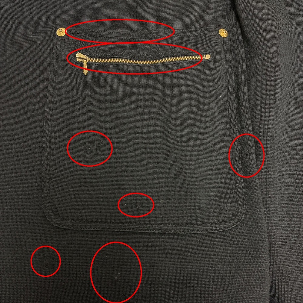 【・襟に擦れ褪せ・前身頃左胸1か所や前身頃下部周りに複数の穴や補修跡※使用感の他、上記のようなダメージがある中古品です。掲載写真や記載内容をご確認いただき、ご理解の上ご購入ください。中古品を扱っているため、元の商品のデザインや形状が全て把握できかねますので、予めご了承下さい。】 | |