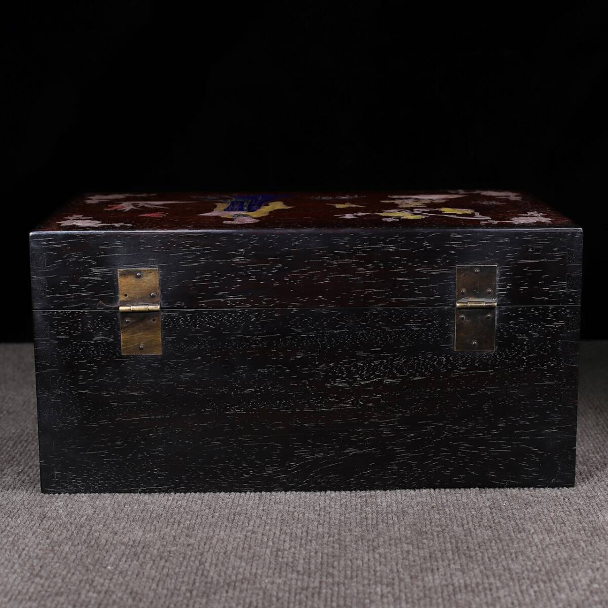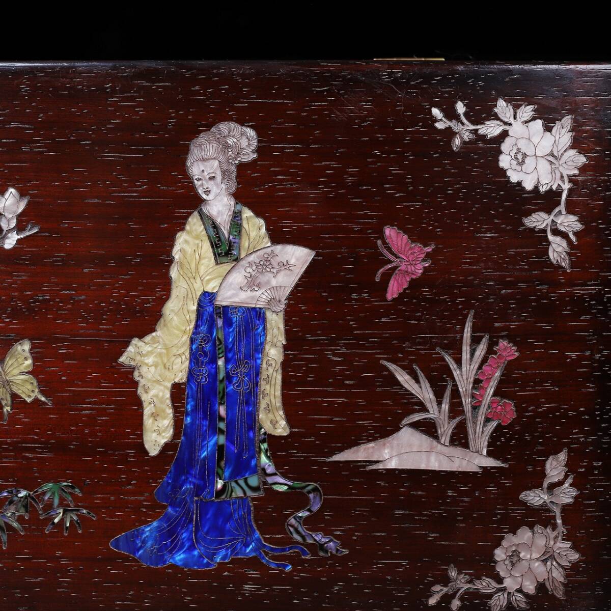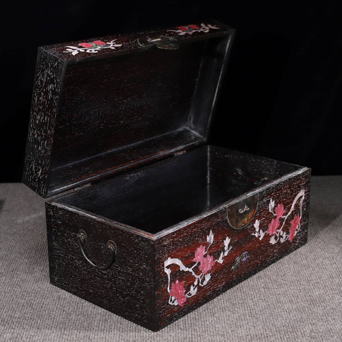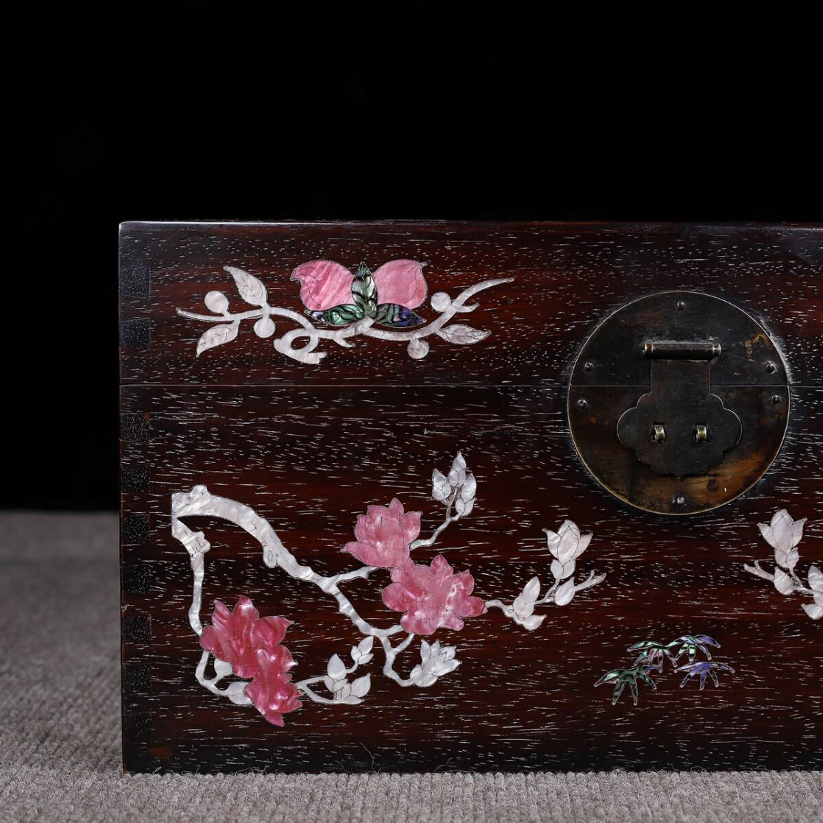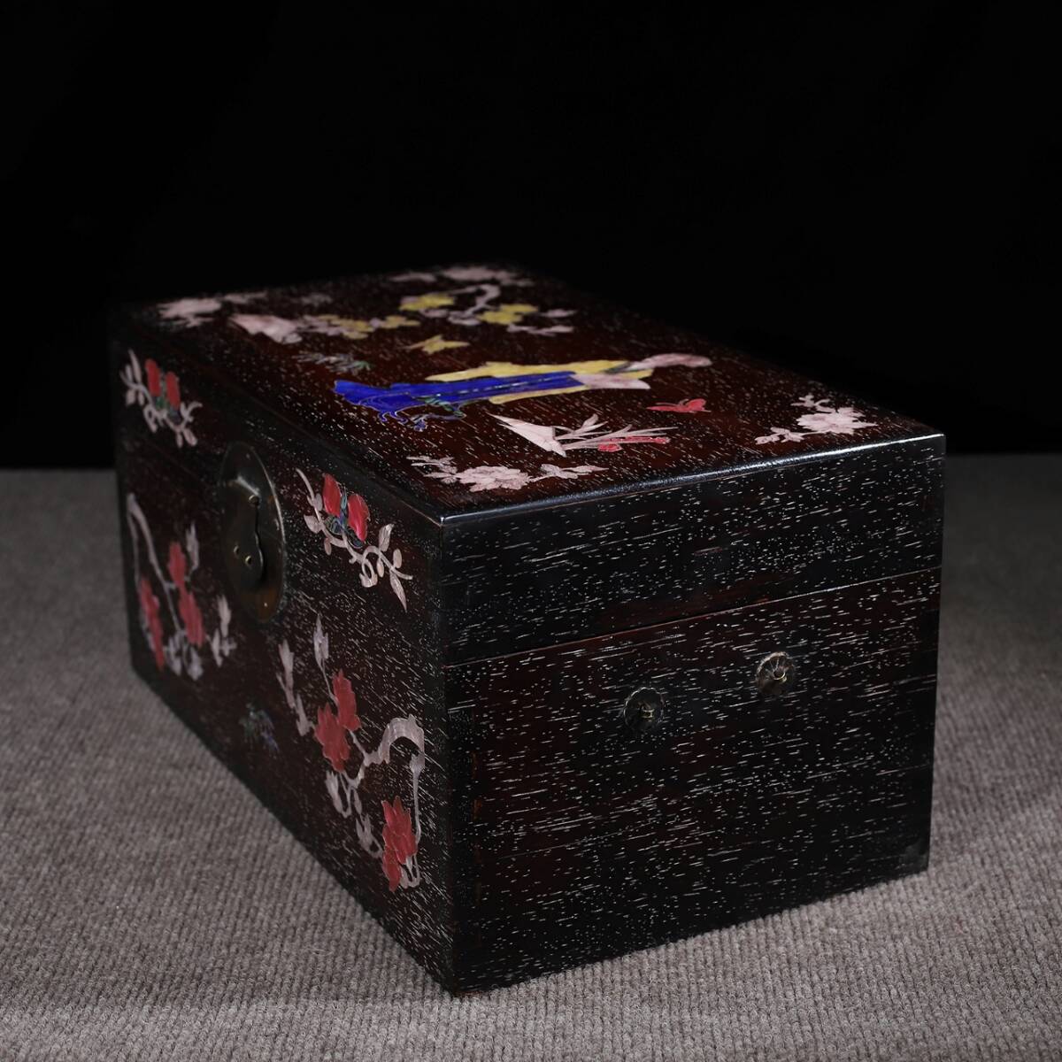 唐物 清 小葉紫檀 モザイク貝殼 仕女圖 首飾箱子 木製 極細工 中国古玩 骨董品 古美味 D68