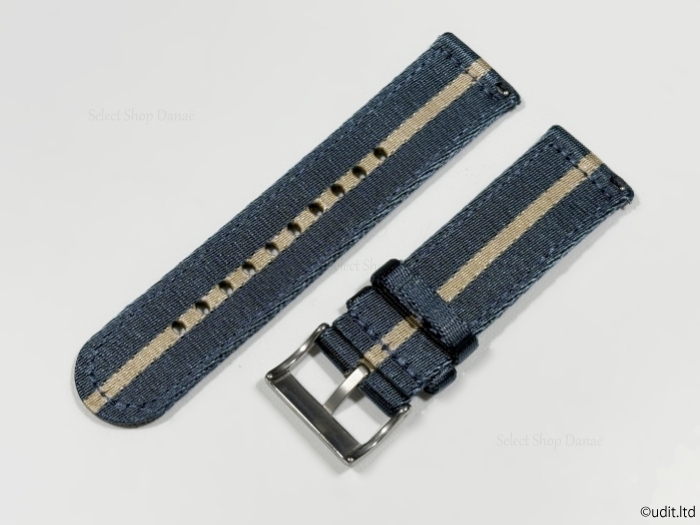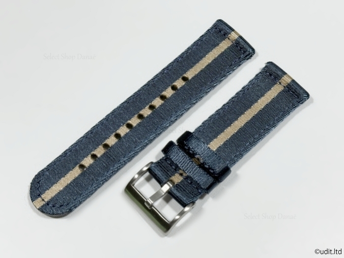 ラグ幅24mm 高品質 艶あり 分割NATOストラップ 腕時計ベルト ブルー ベージュ 時計用バンド DBI