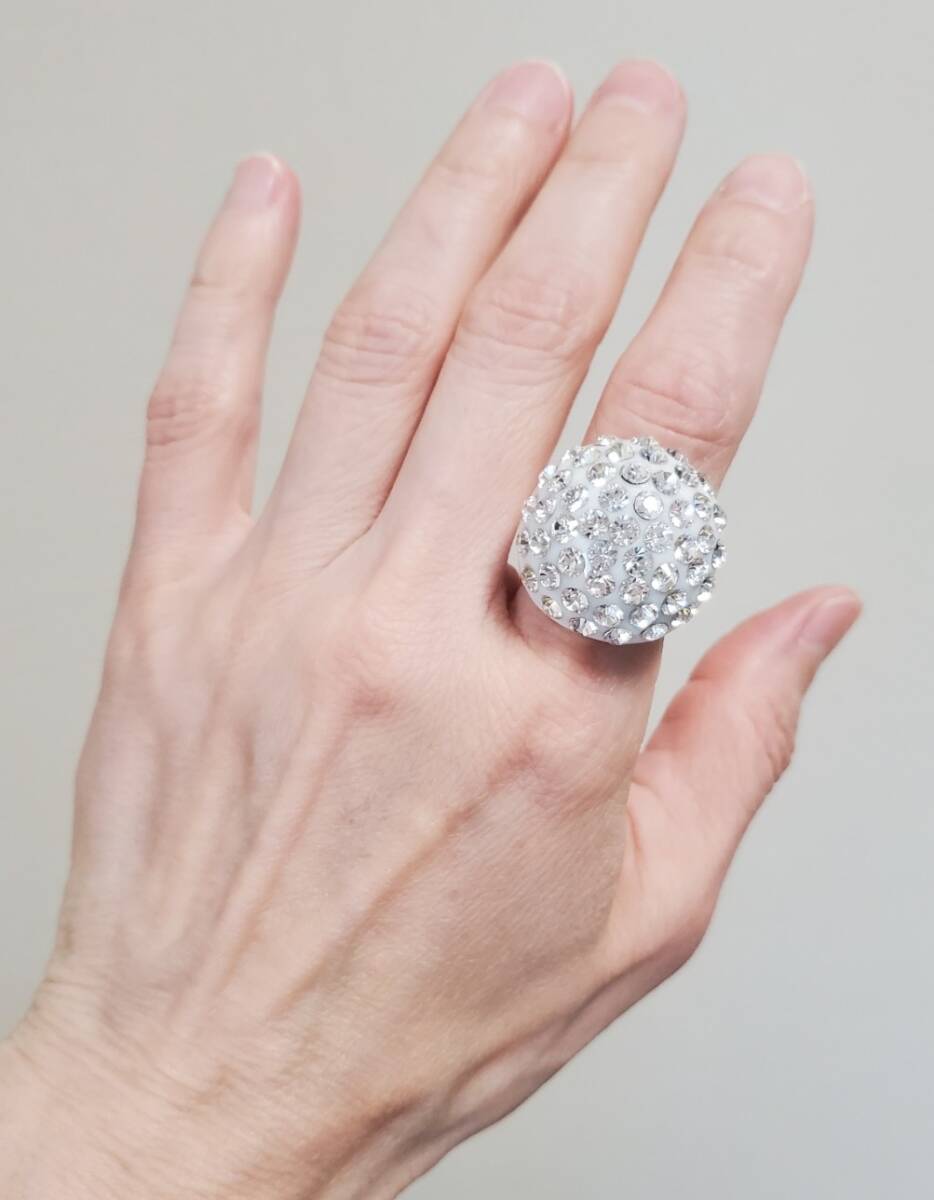 ラインストーン プラスチック製 指輪 レディース アクセサリー 14-14,5号 7,2g 美品