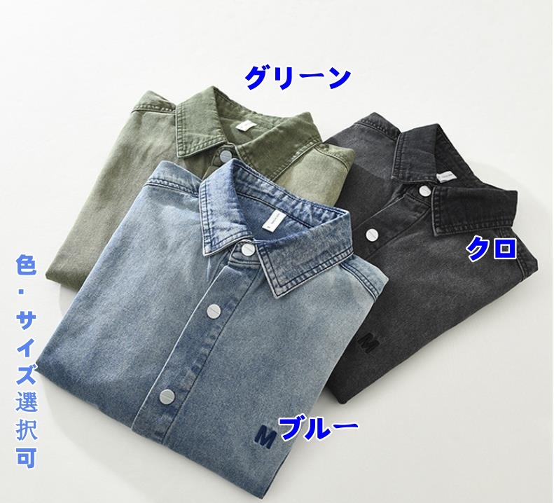 デニム長袖シャツ デニムシャツ 新品★メンズ シャツジャケット シャツ トップス ウエスタンシャツ トレンド カジュアル【SS7738】グリーン M