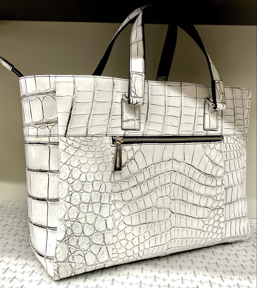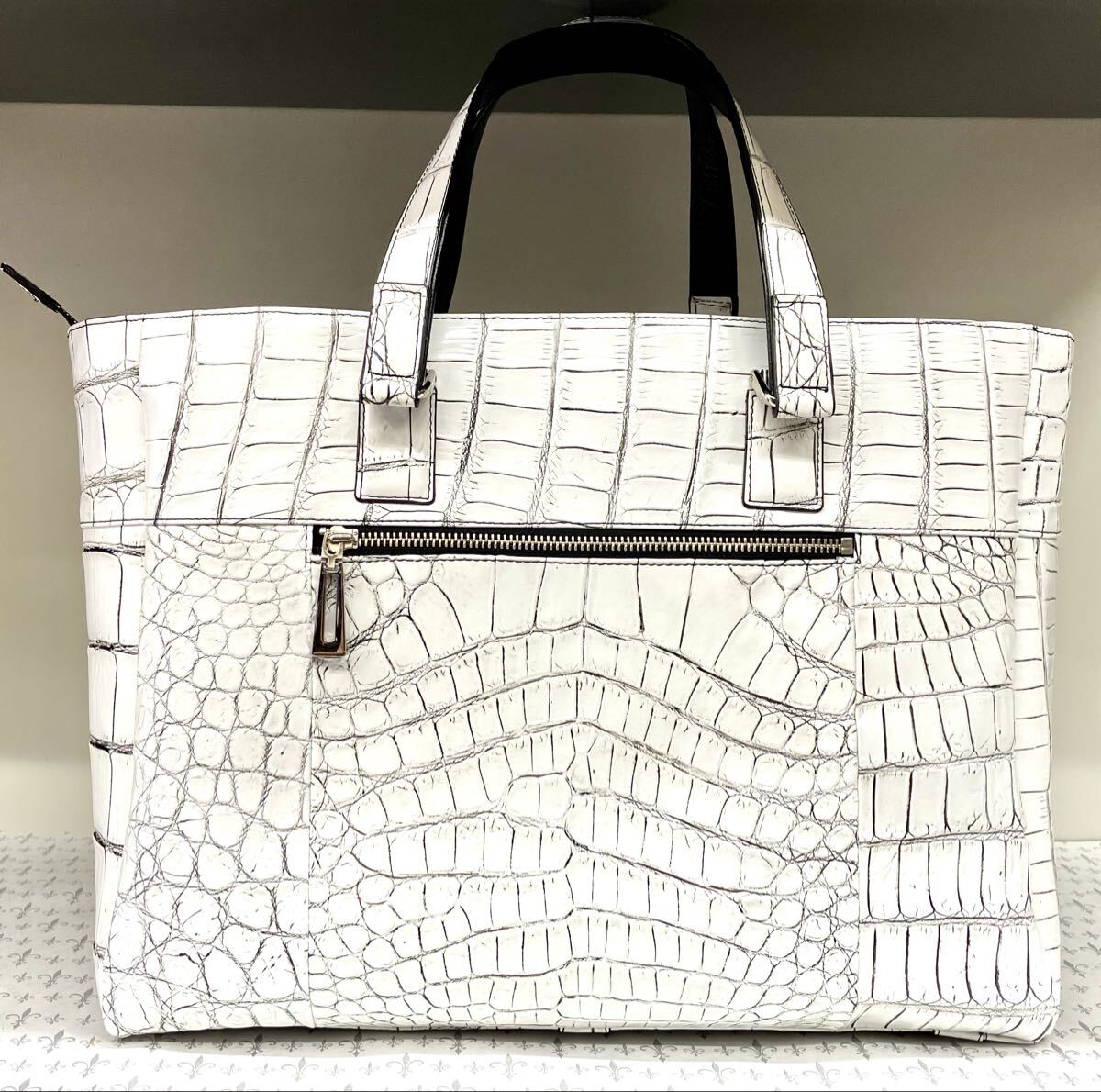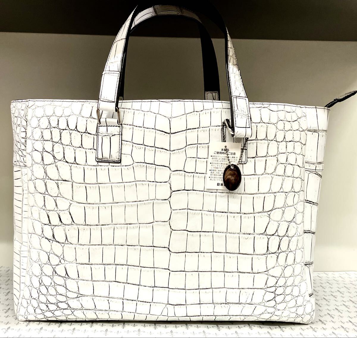 国産、日本製のクロコダイルワニ革使いの手提げ&ショルダートートバックです。