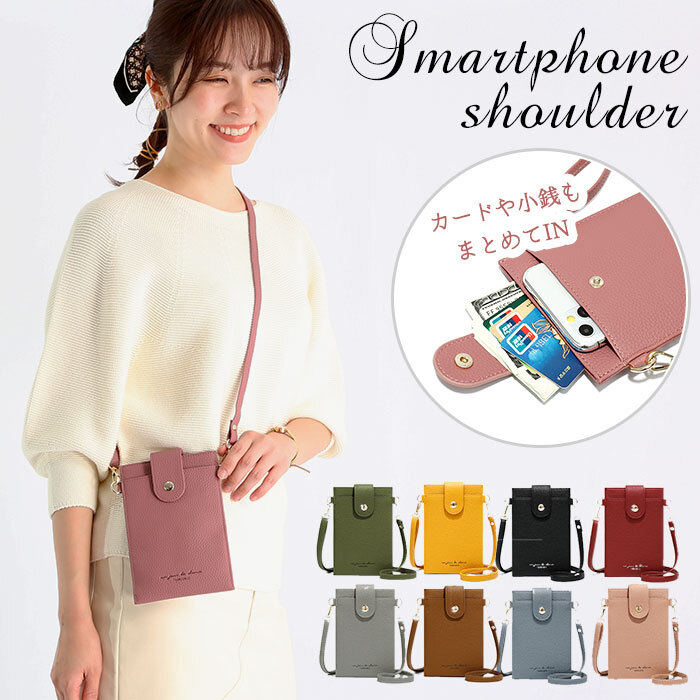 商品説明 | ・ワンマイルコーデにぴったり♪シンプルでミニマムな、スマホポーチが新登場! ・ちょっとそこまでのお出かけにおススメな、薄型スマホポーチ。 ・スマホの収納はもちろん、お財布機能も備えている「お利口ポーチ」だから、荷物をコンパクトにまとめられてとっても便利♪ ・ポーチ開口部はスナップボタンでさっと開閉できるフラップ付き。 ・2つのオープンポケットにはスマホやキーケース等を収納することができて便利♪(スマートフォン推奨サイズ:本体6.7インチまで) ・背面には、コインや紙幣の収納に最適なファスナーポケット付き。コインがラクに出し入れできて、落としてしまう心配がなく安心。 ・取り外し可能なキーリング付きで、バッグの中で鍵が迷子にならない! ・取り外し可能なショルダーストラップは、長さ調節が可能。・本体はスプリットレザー加工のシボ感とゴールド使いのファスナーが高級UP! ・高品質なシボ入りのPUレザーを採用しているので、高級感がありキズが目立ちにくいのも嬉しいポイント。 ・ゴールドカラーの金具使いも上品で華やかな印象に♪ |