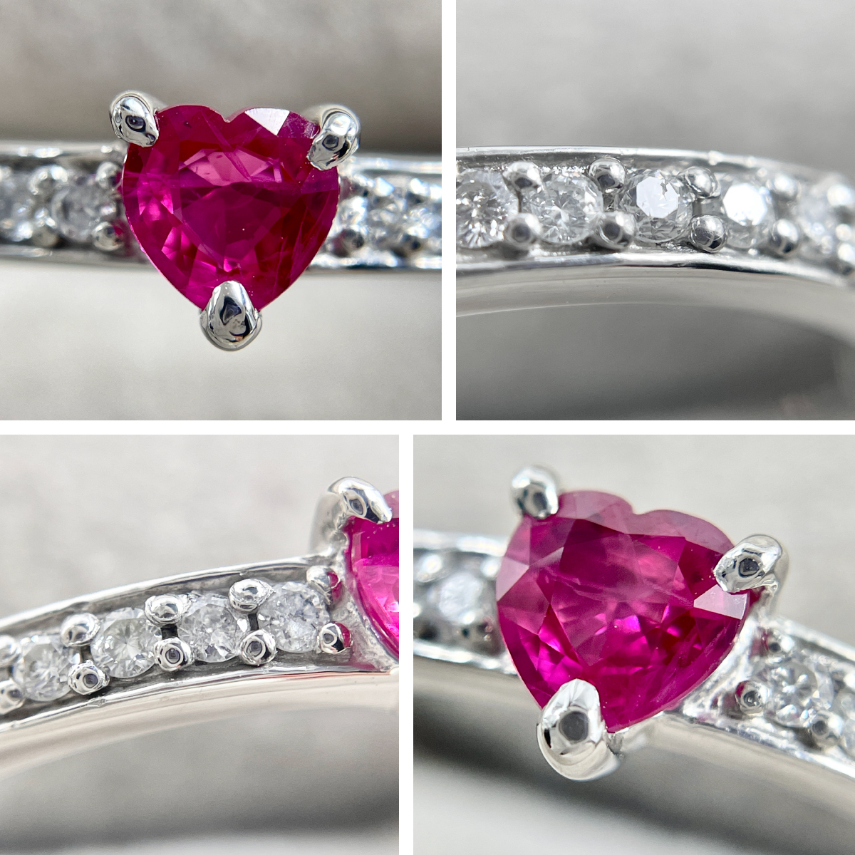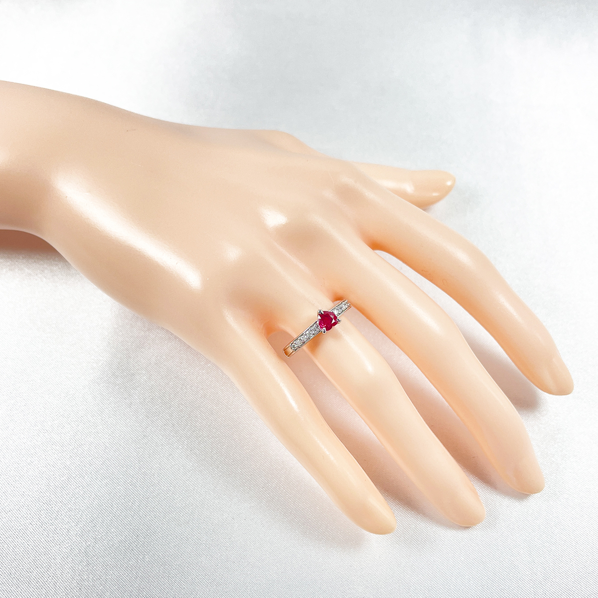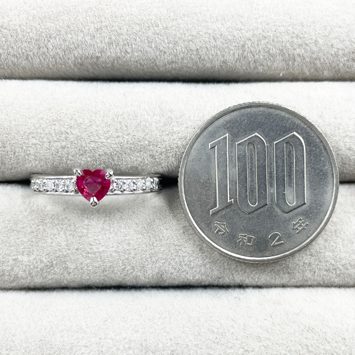 深みのあるレッドが魅力的なハートシェイプカットルビーが主役のリング。
