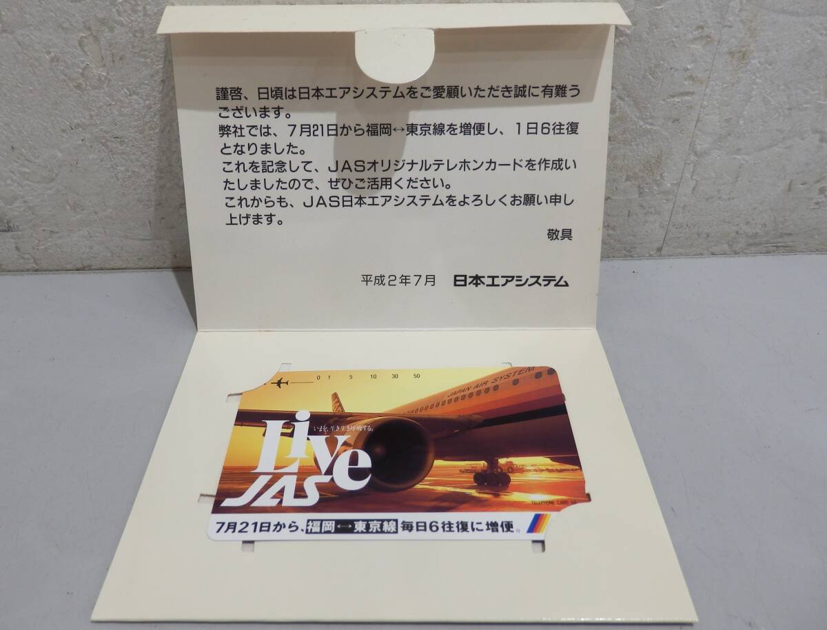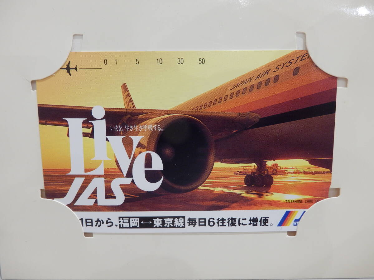 ★69859E 未使用テレカ 50度数 JAS 増便記念 福岡⇔東京 台紙付 | ||