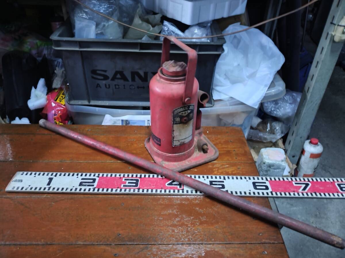 専用の操作棒80cm付 本体重量12.5kg程有る 耐荷重とかストロークとか製造年等データは解らない。