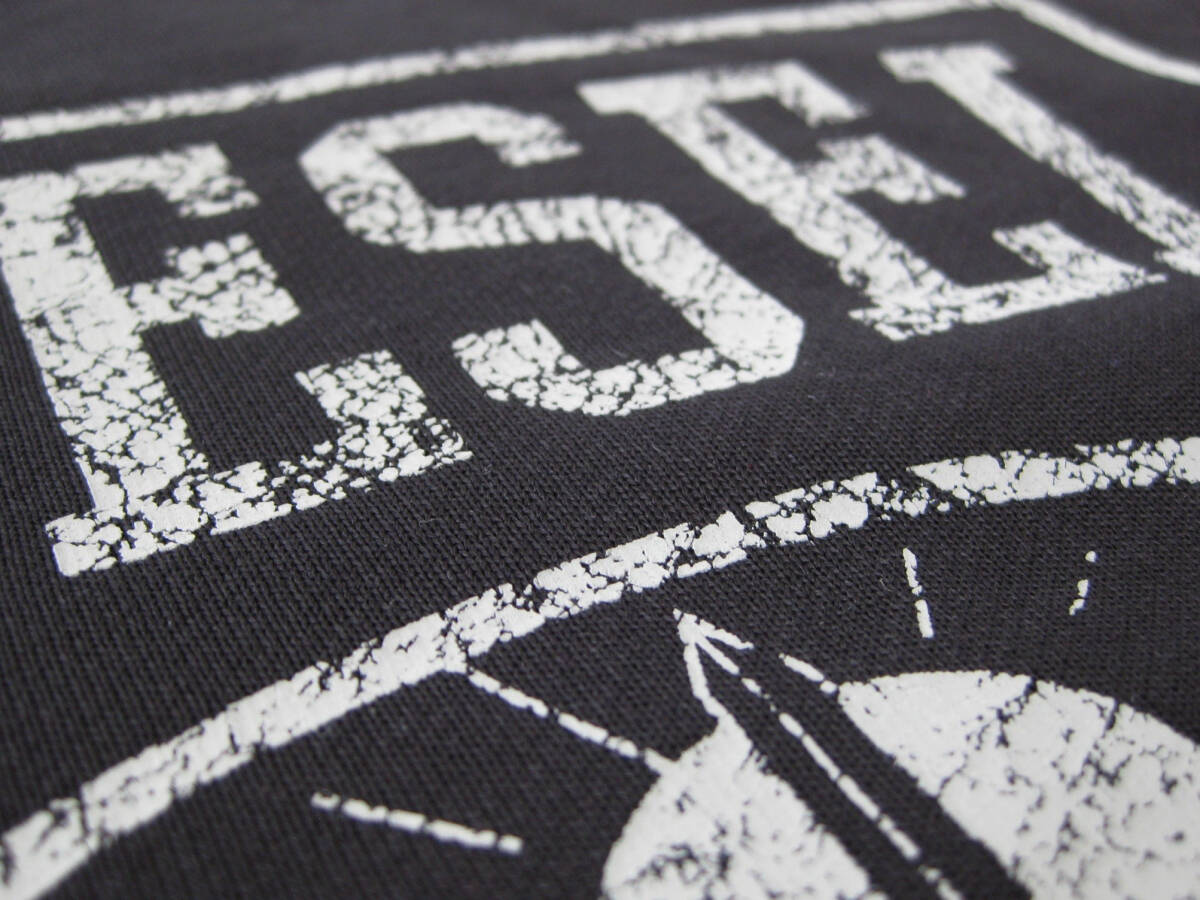 グラフィックプリントはクラック(ひび割れ)プリントになっていてヴィンテージ感があります。