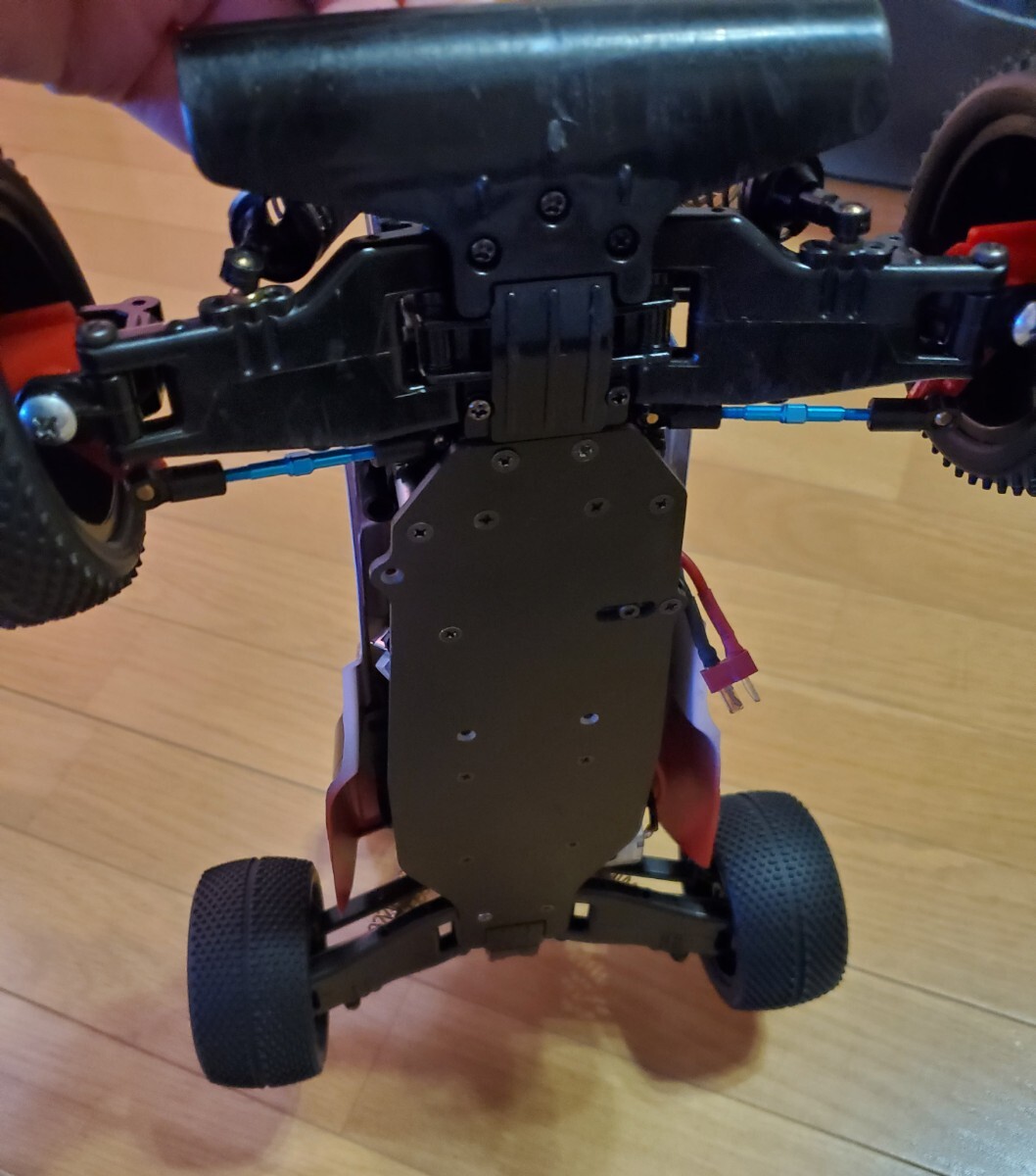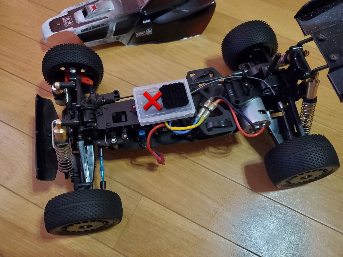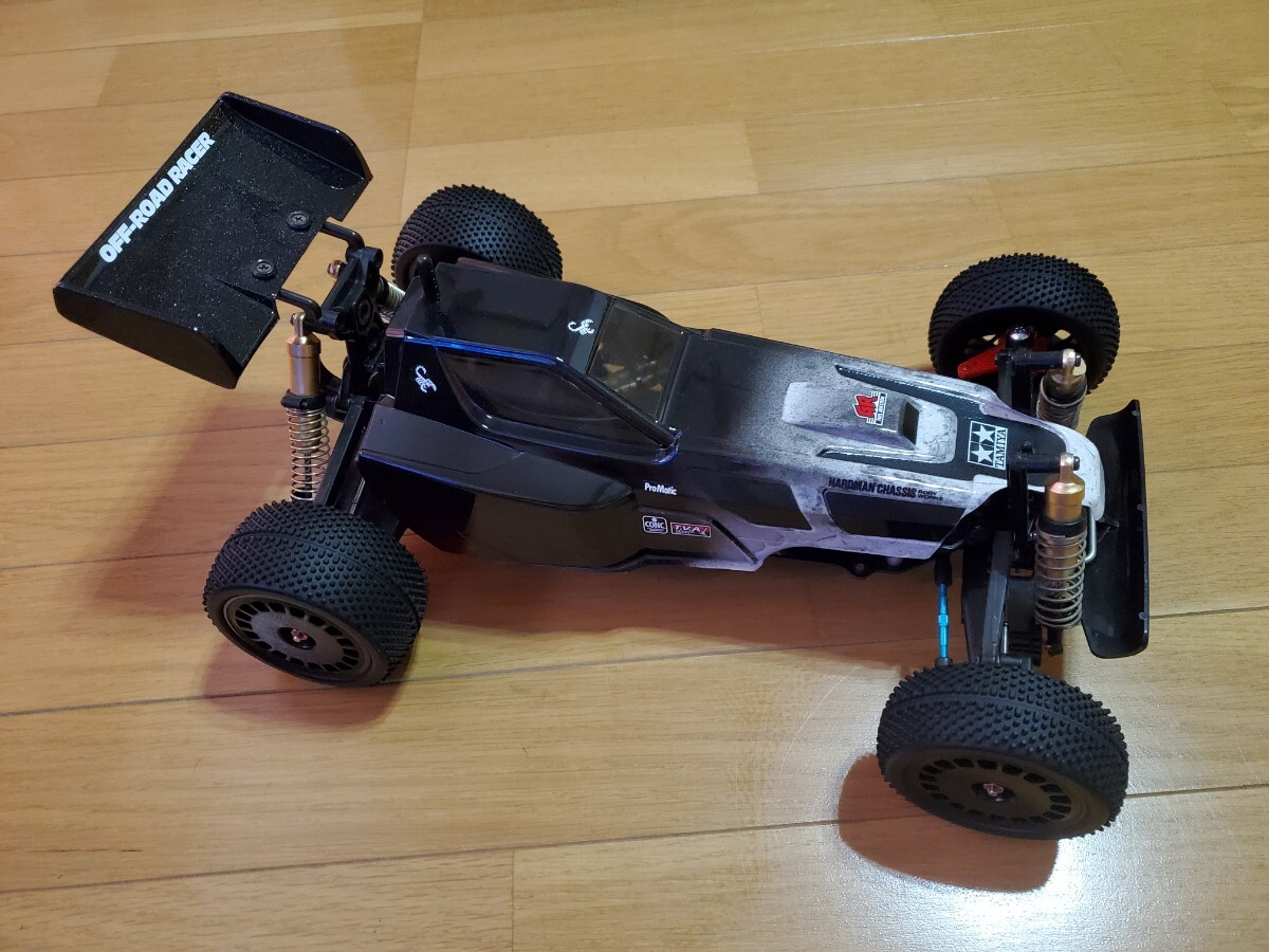 マンタレイ復刻版の改造シャーシに…スリムでカッコいいレーシングファイターボディを載せました!受信機は付属しません!モーターはファン付きで、サンワのハイ・スピードサーボと、京商のアルミダンパーか付属致します…ダンパーだけでも高価です笑 私は…リポ3セルで爆走させてました笑 動作確認済みですが、3Nのお約束でお願いいたします。