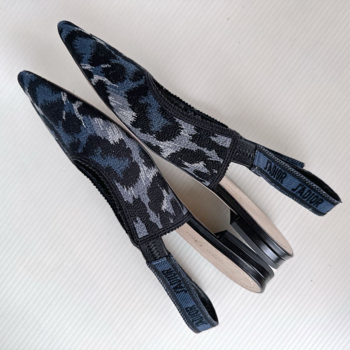 ChristianDior クリスチャンディオール スリングバックフラット J’ADIOR パンプス レディース 36.5 ブラック×ネイビー 化学繊維×コットン 靴 ミュール サンダル フラットシューズ