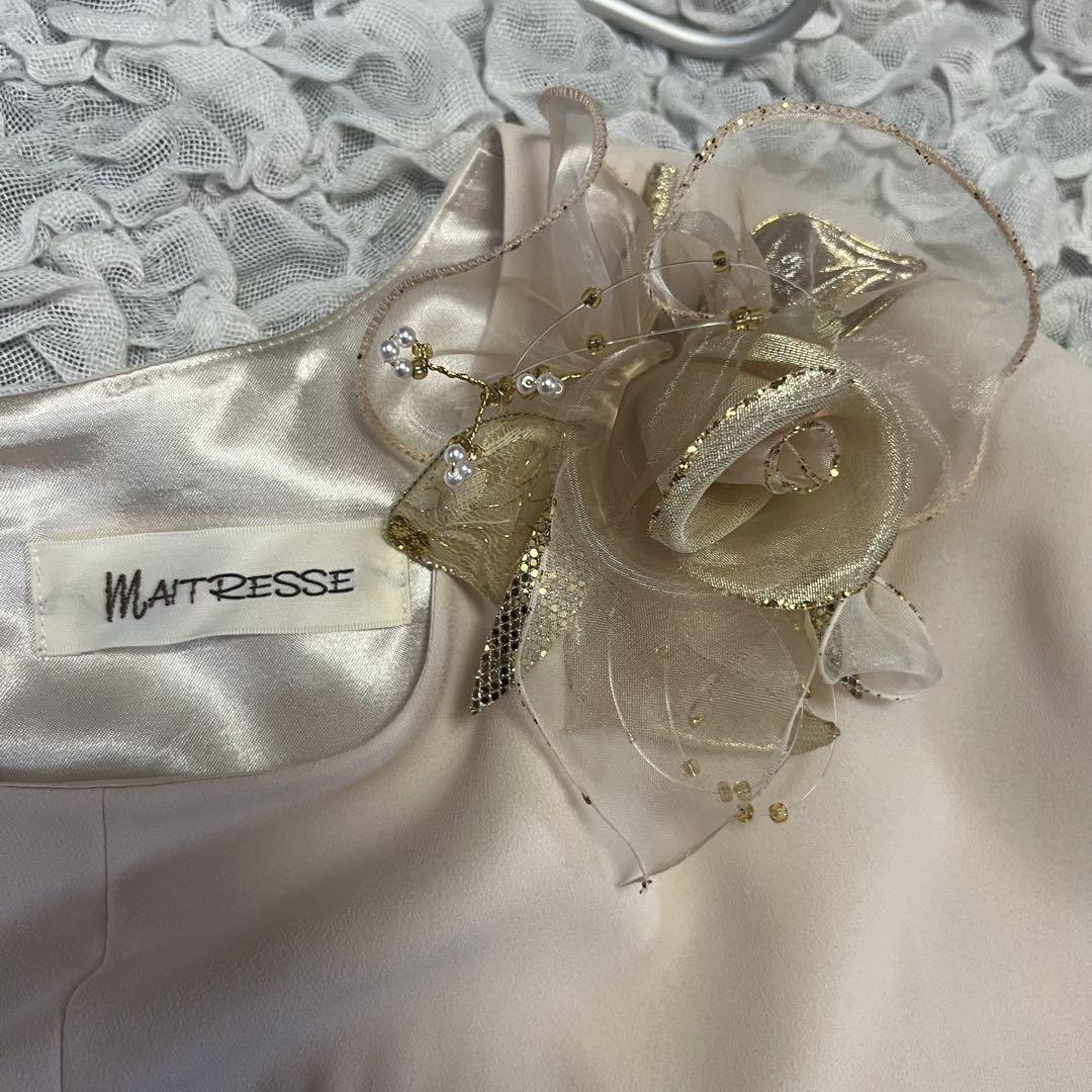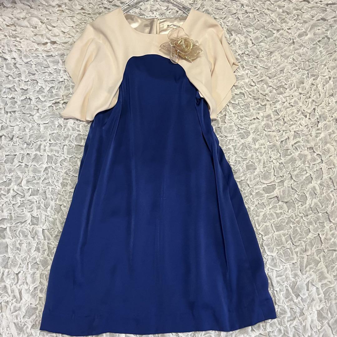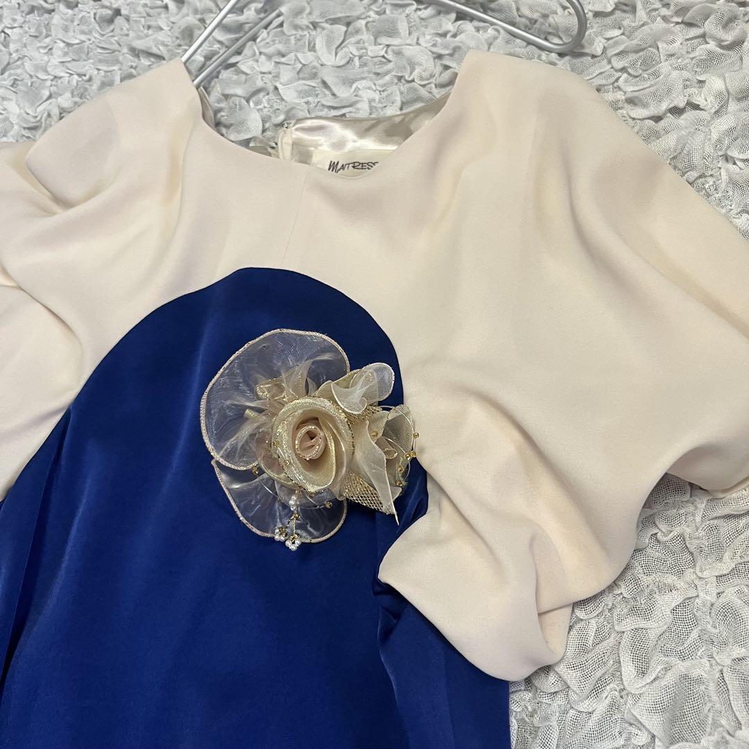 ■アイテム: 美品コサージュ付き【メトリーゼ】青のカラードレス 38 M ドルマン ワンピース