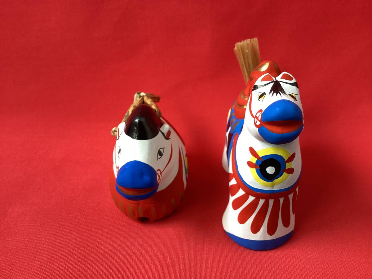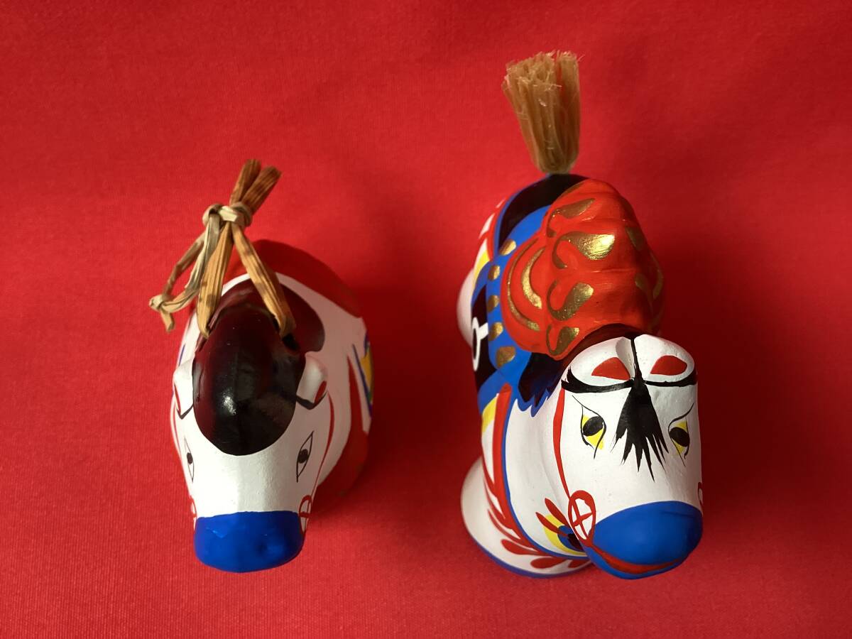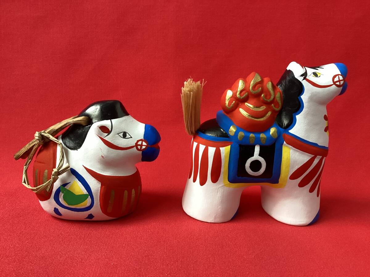 状態:未使用ですが、馬鈴の右顎の白地に顔料の付着があります。稲荷駒の左脇の白地に顔料の付着があります。