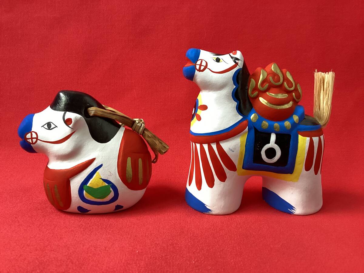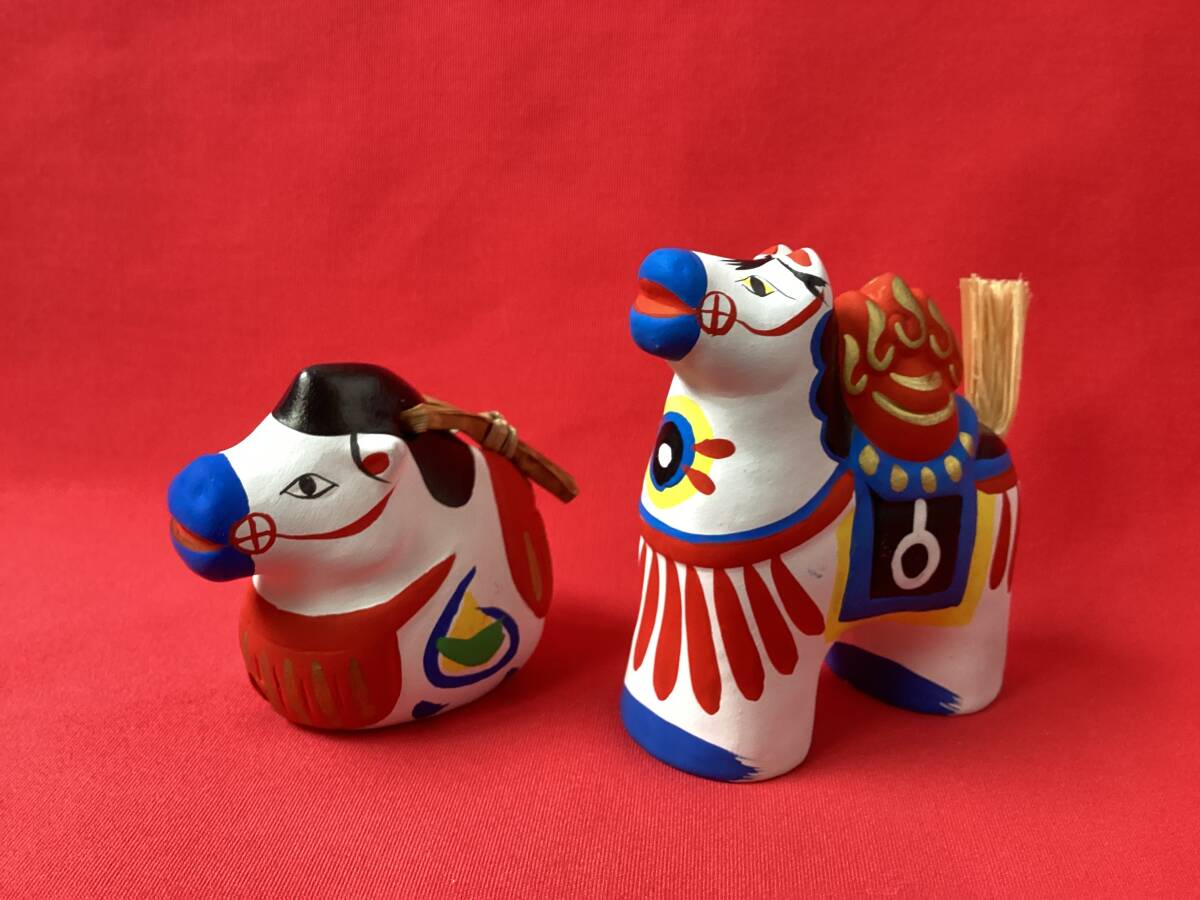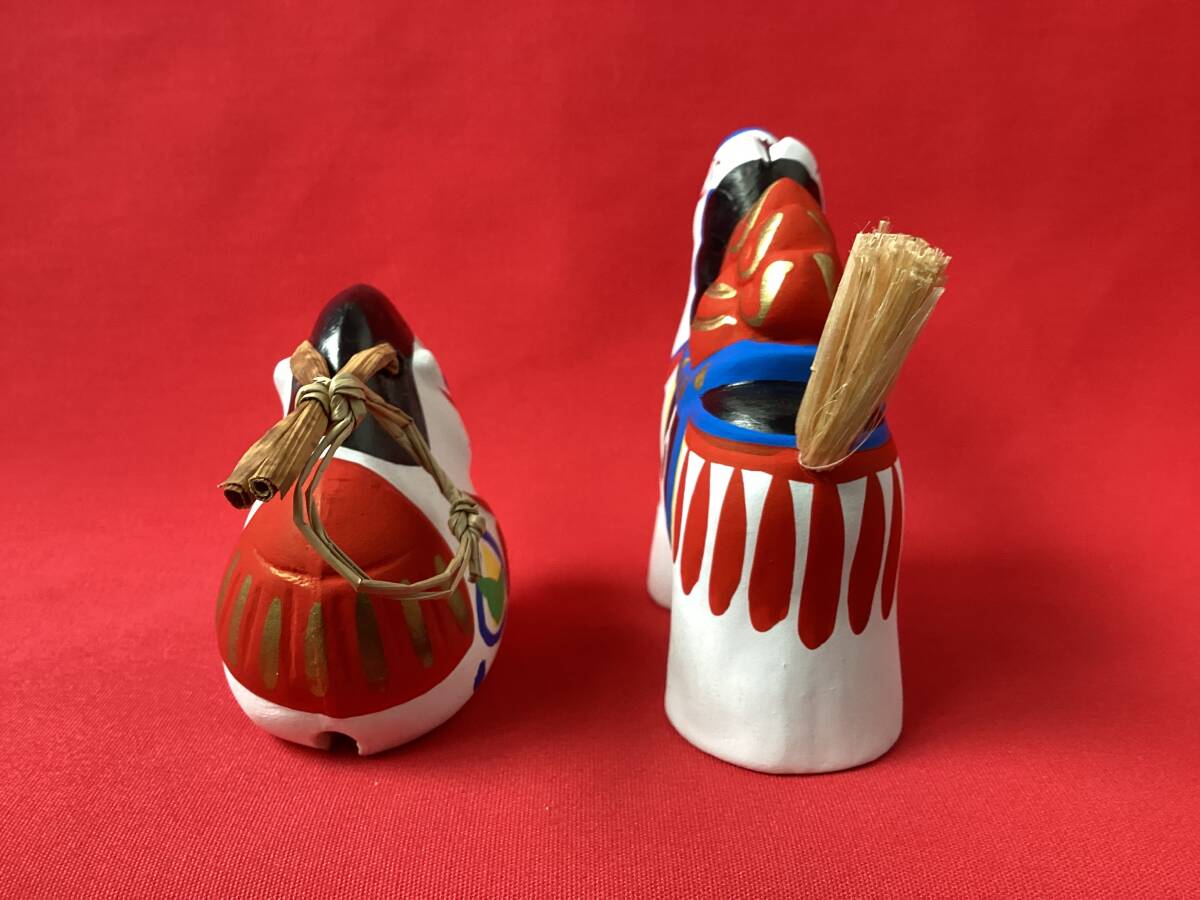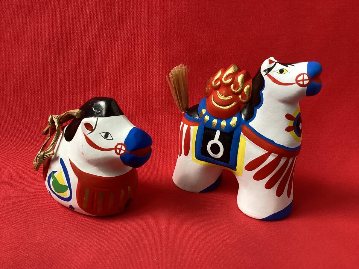 状態:未使用ですが、馬鈴の右顎の白地に顔料の付着があります。稲荷駒の左脇の白地に顔料の付着があります。