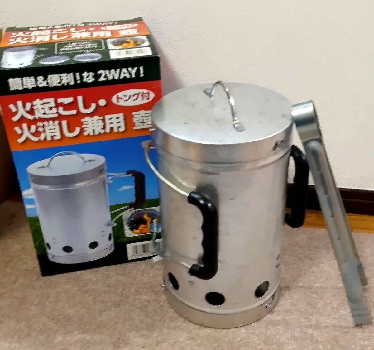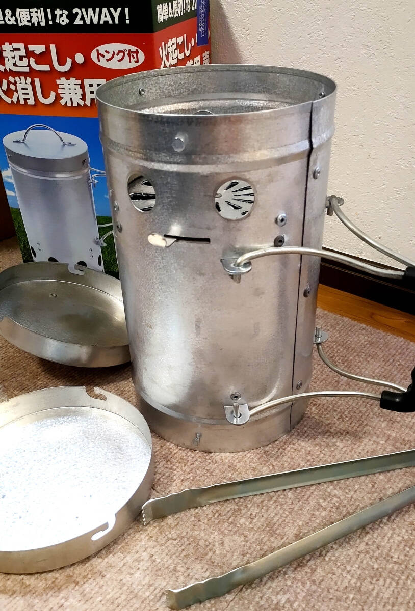 火起こし兼用火消し壺 トング付