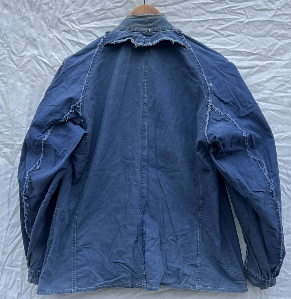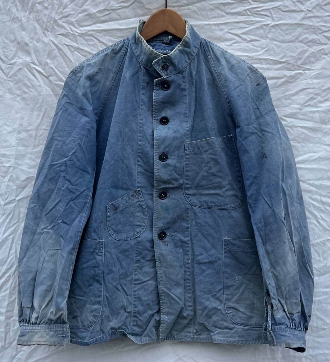 コンディション:見ての通り激しく色抜け等あるもの。ペンキ等の他にも汚れあります。襟部分擦り切れあり。うぶ荷の状態でしたが風合いが変わってしまう可能性があるので洗っていません。古い物ですのでご理解の上ご入札ください。