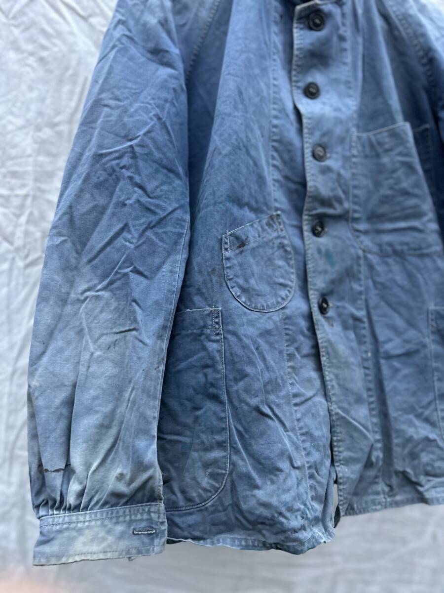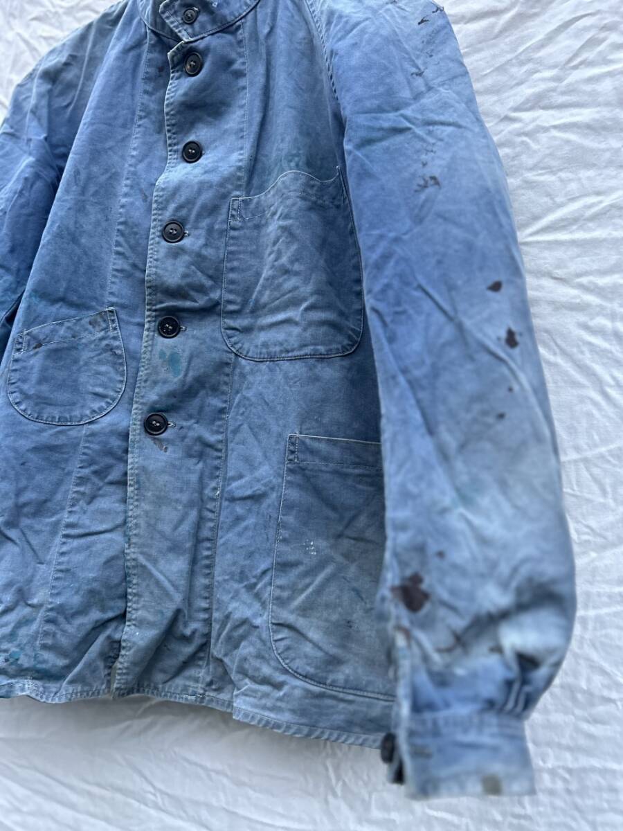 説明:非常のいい感じに焼けて色抜けもした人気のナッパ服。激し目に絵の具?ペンキ?等の汚れも多数あり。綺麗なものはたくさん出てきますがここまで使い込まれたものはあまり出てこず、またこんなに色抜けもしないので気になる方が多いアイテムだと思います。是非この機会に!!