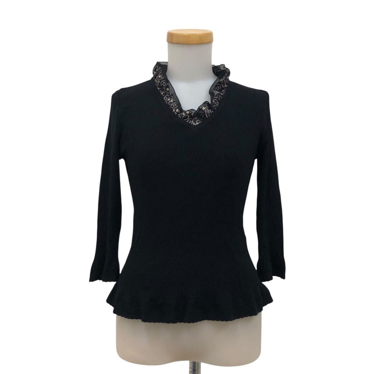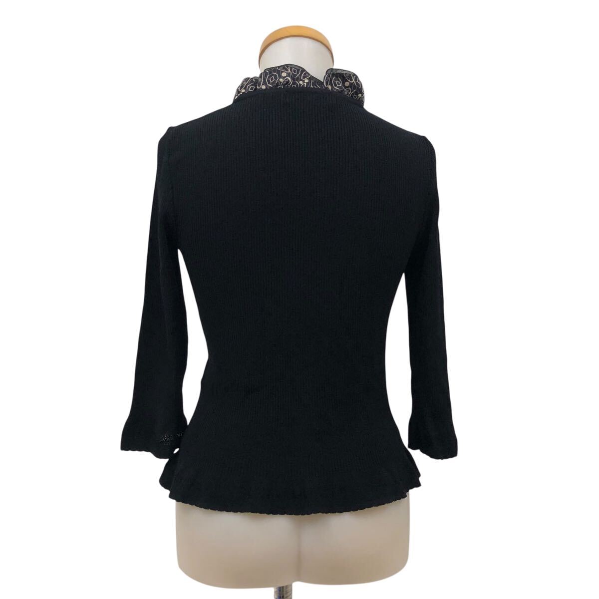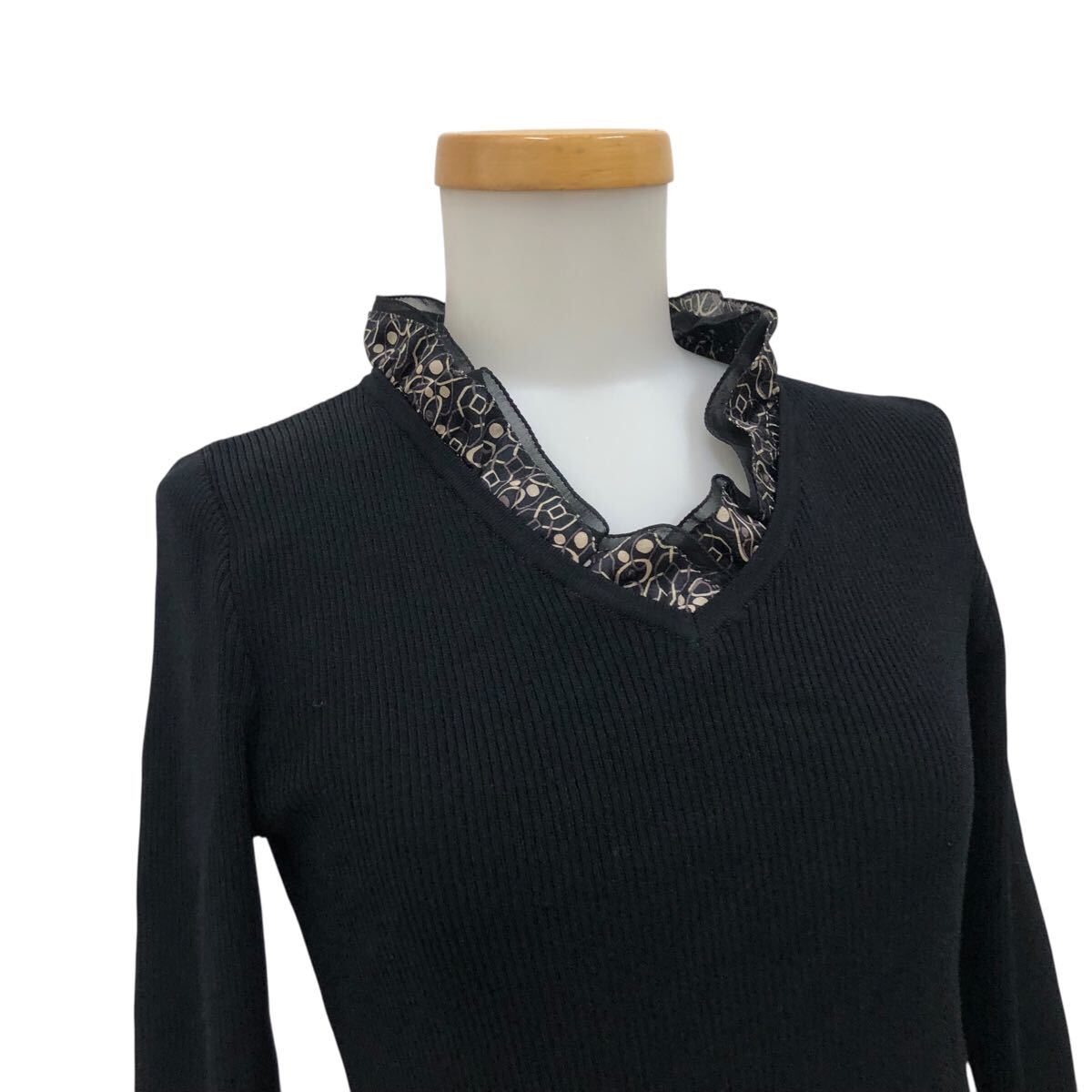 NC315-6 Paul Stuart ポールスチュアート フリル デザイン ニット セーター プルオーバー トップス レディース 6 ブラック 黒