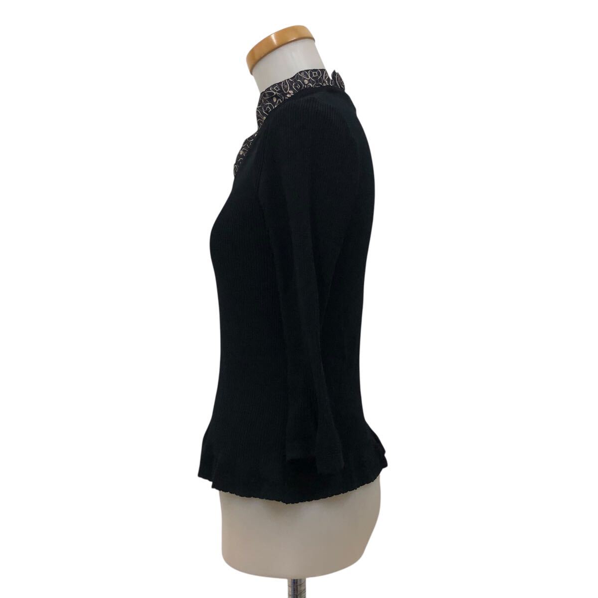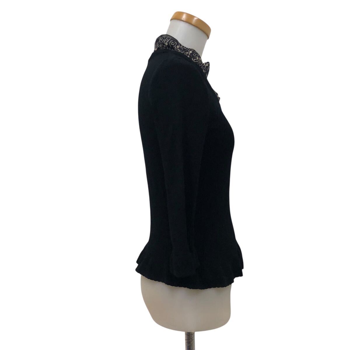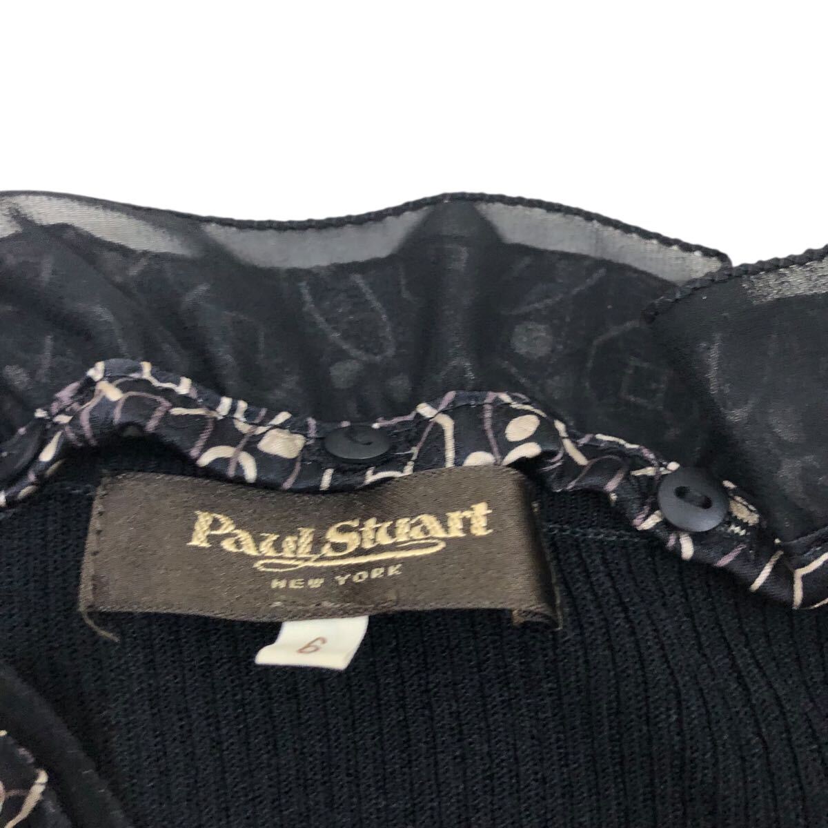 NC315-6 Paul Stuart ポールスチュアート フリル デザイン ニット セーター プルオーバー トップス レディース 6 ブラック 黒