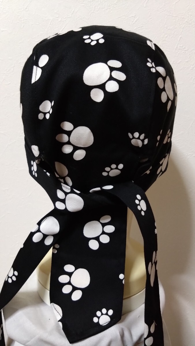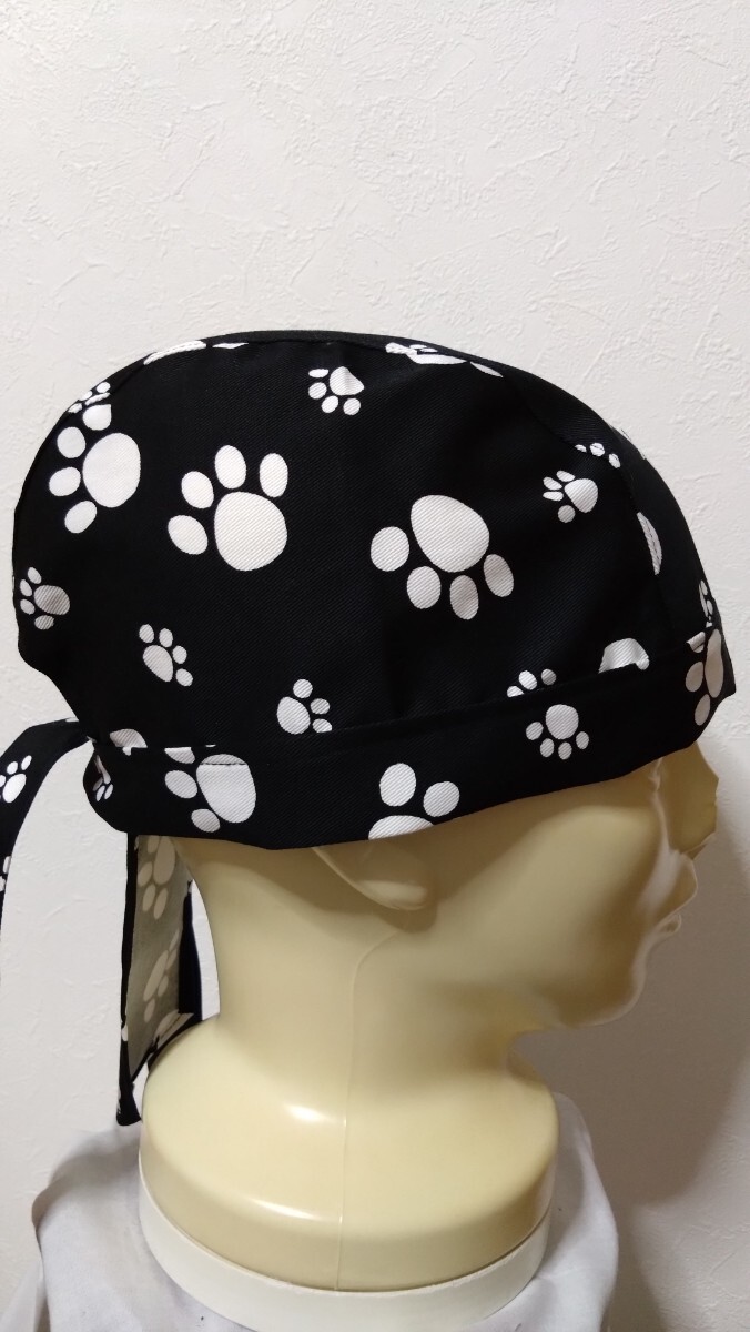 ★バンダナキャップ★ハンドメイド 足あと 黒 ブラック