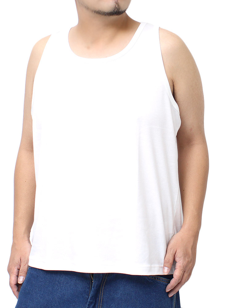 | 商品名 | 【新品】 3L ホワイト タンクトップ メンズ 大きいサイズ 無地 ボーダー スムース ノースリーブ カットソー |