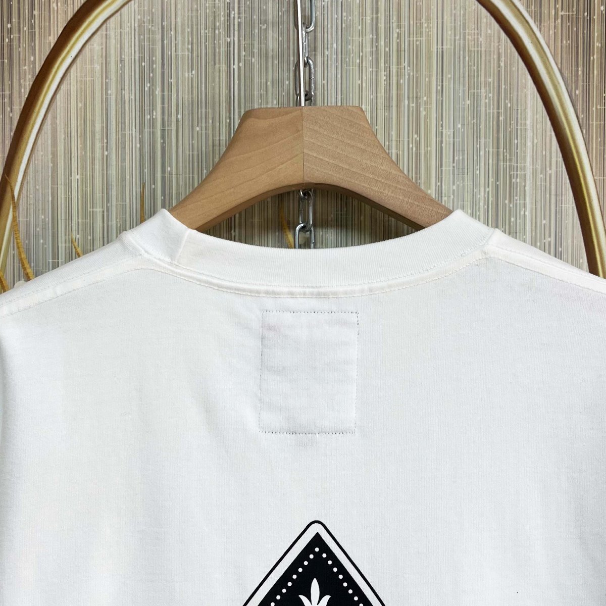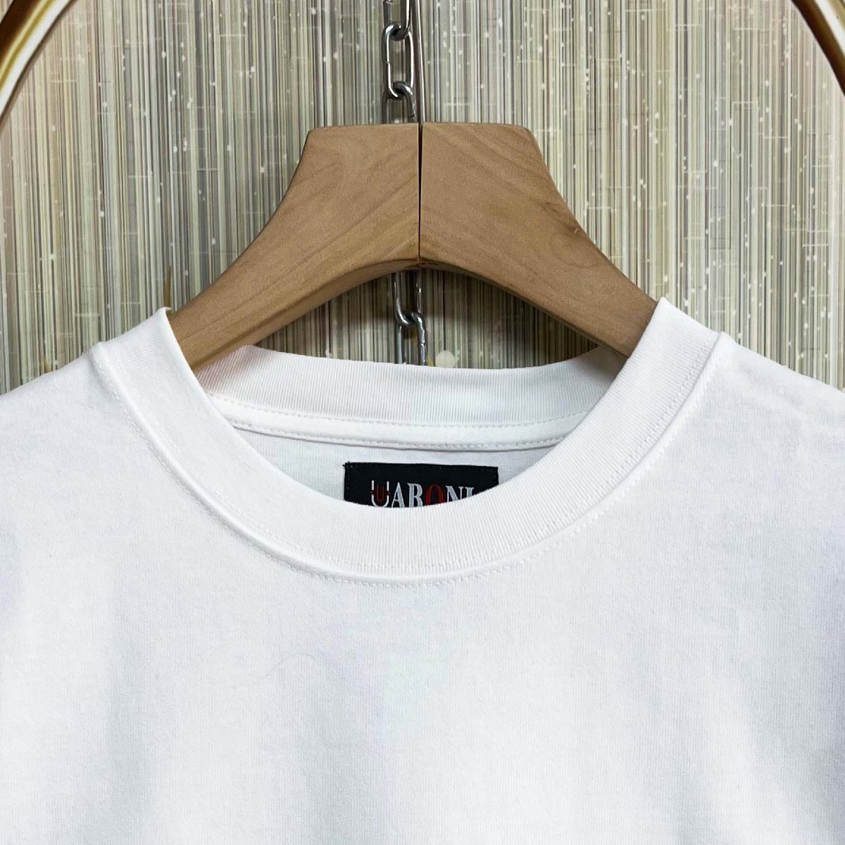 Tシャツは、やっぱり使いやすい定番のクルーネック。重ね着しても首元がもたつかず、すっきりとした着こなしが叶います。フロントは無地のシンプルなデザインで、清潔感のある印象に。バックには、センスの光るプリントを施し、さりげなく個性をプラス。主張しすぎない上品なデザインながらも、背中から覗くアクセントが印象的で、自然と存在感を引き立てます。