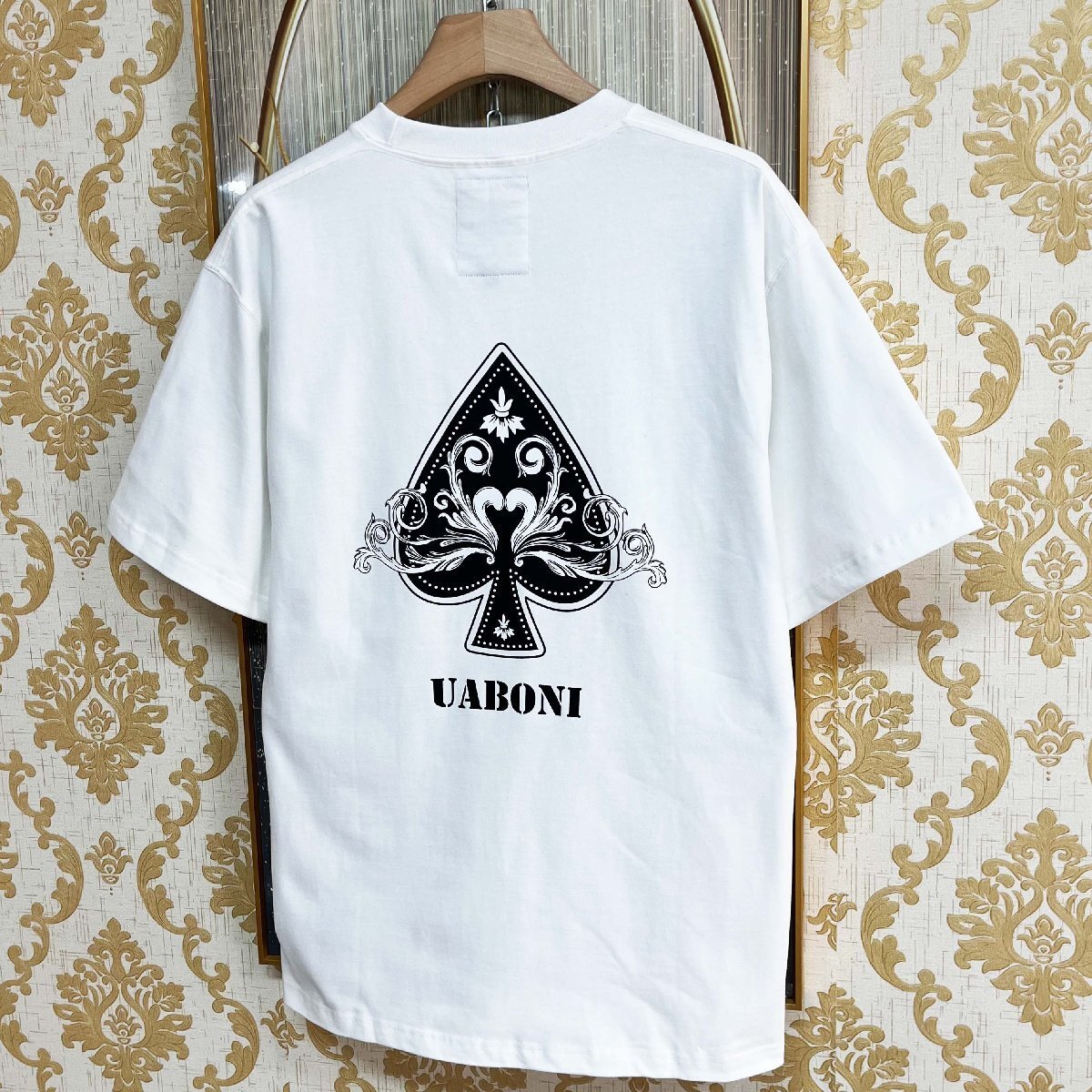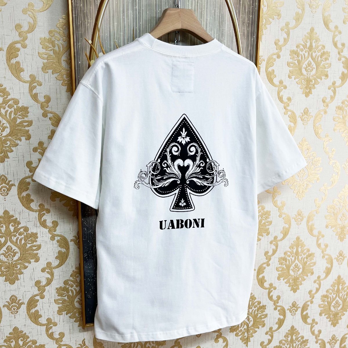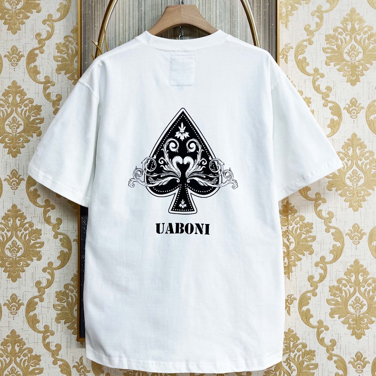 高級EU製&定価2万◆UABONI*Paris*半袖Tシャツ*フランス*パリ発◆綿100% 快適 通気 ロゴ スペード柄 プルオーバー カジュアル 夏服 2XL/52