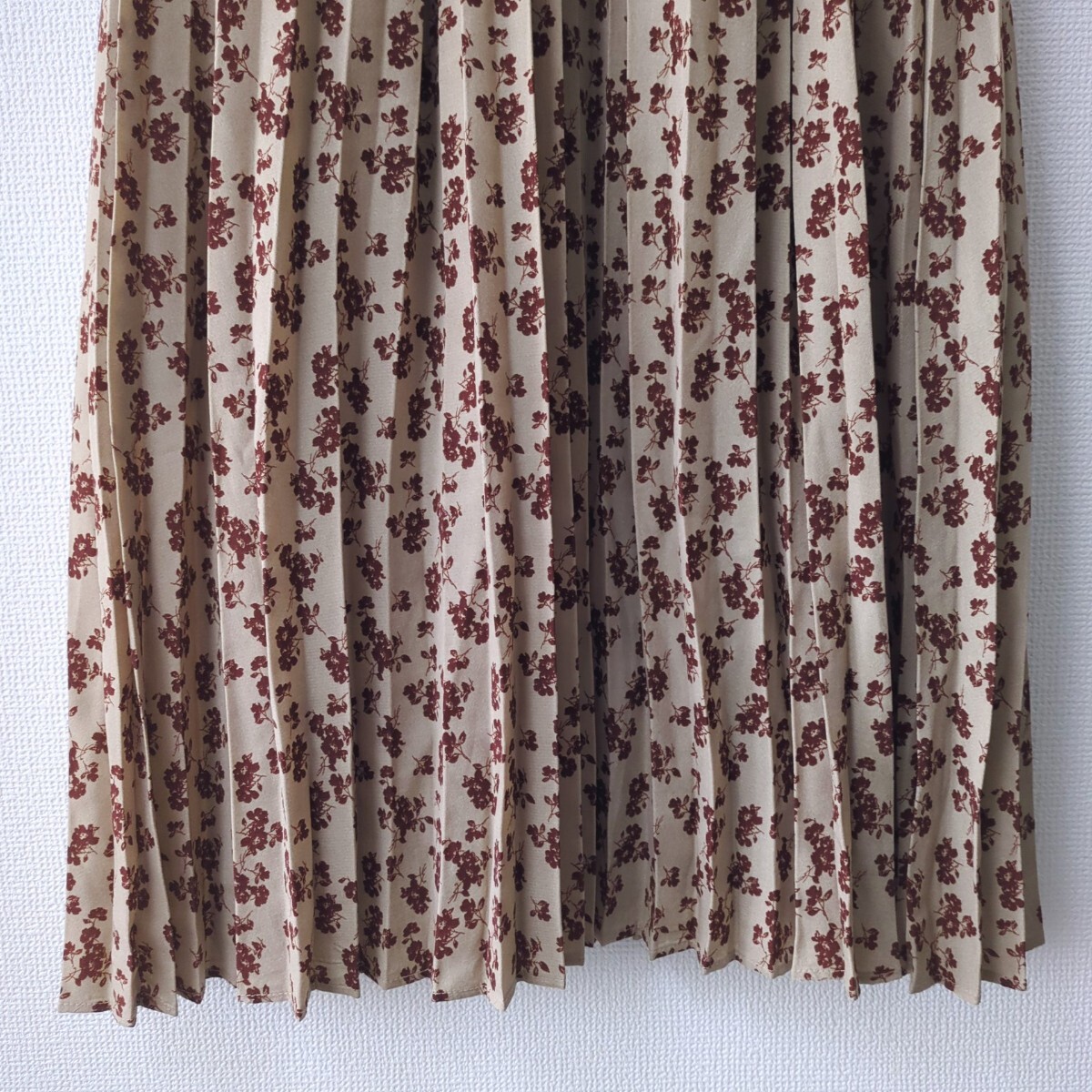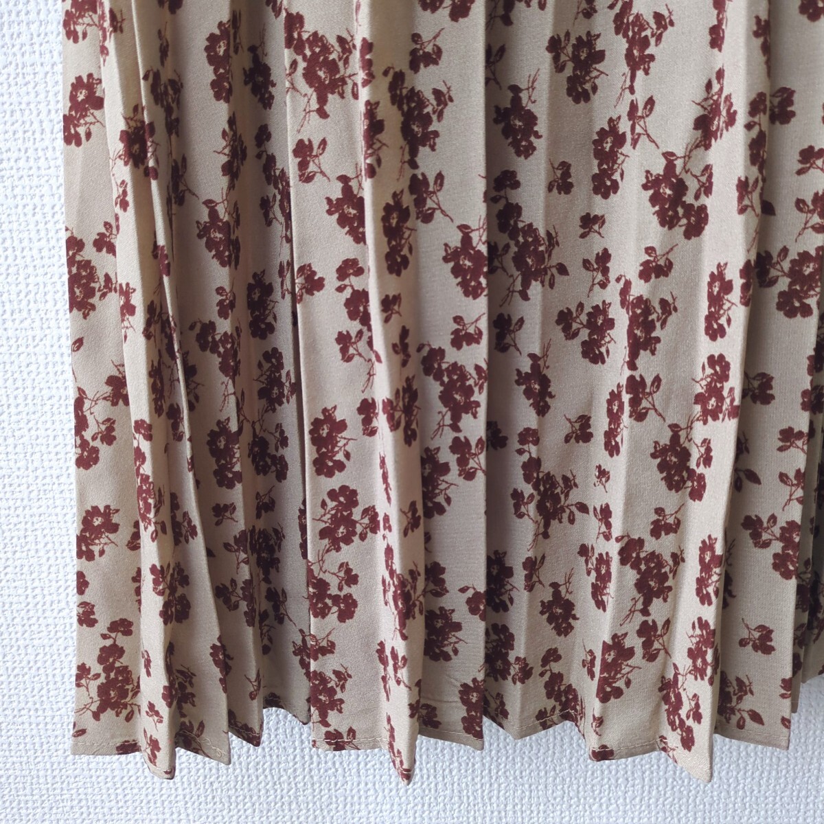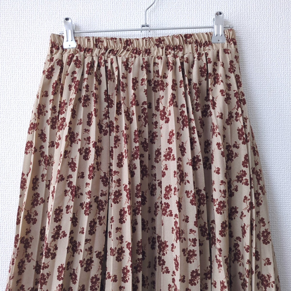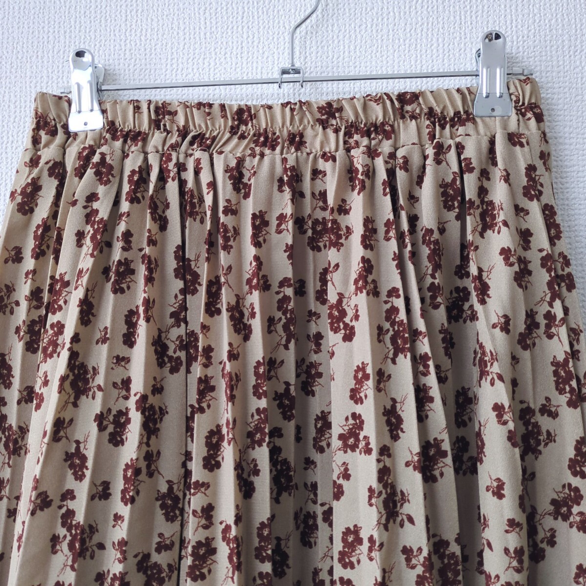 美品 Zunus 小花柄ロングスカート レディースフリーサイズ ベージュ