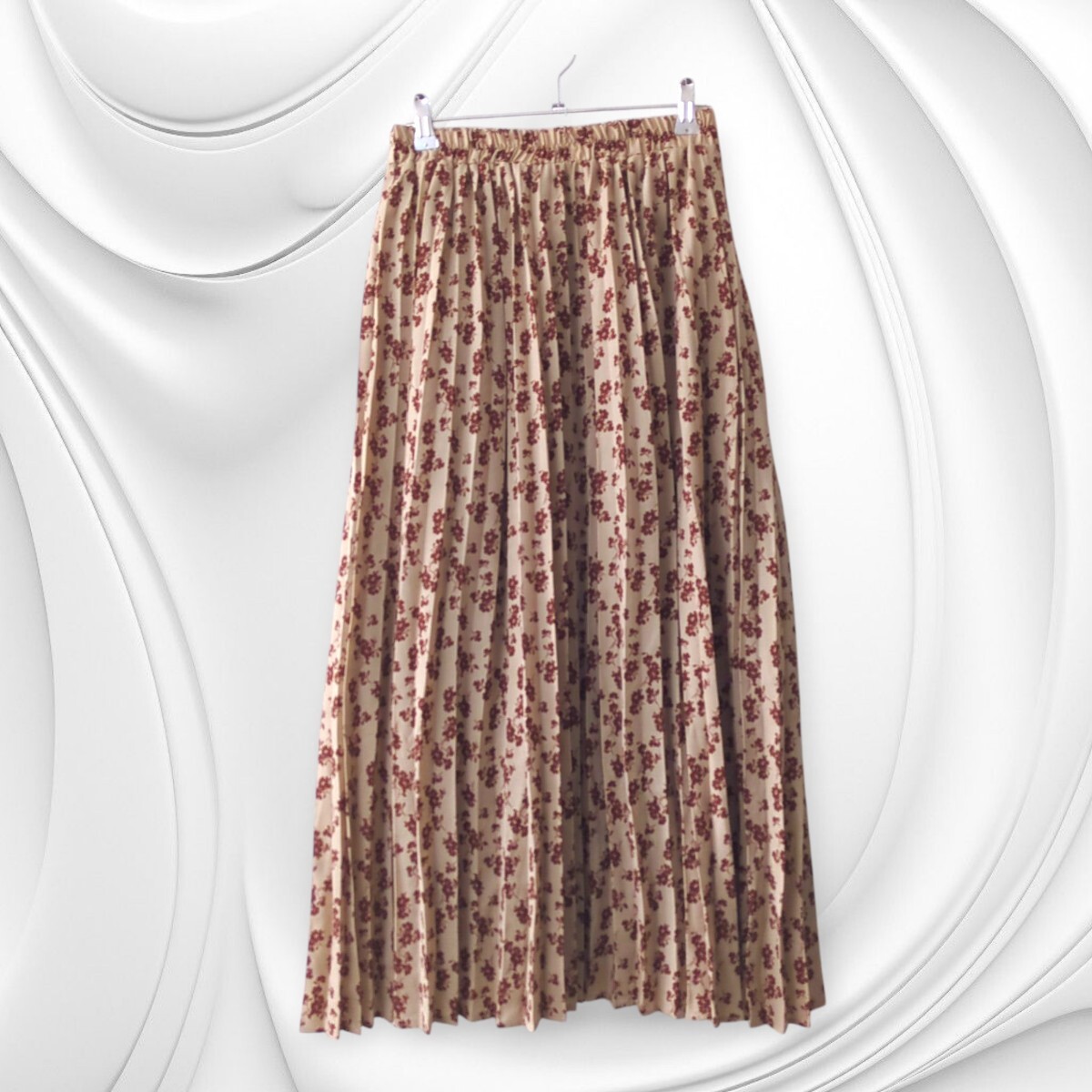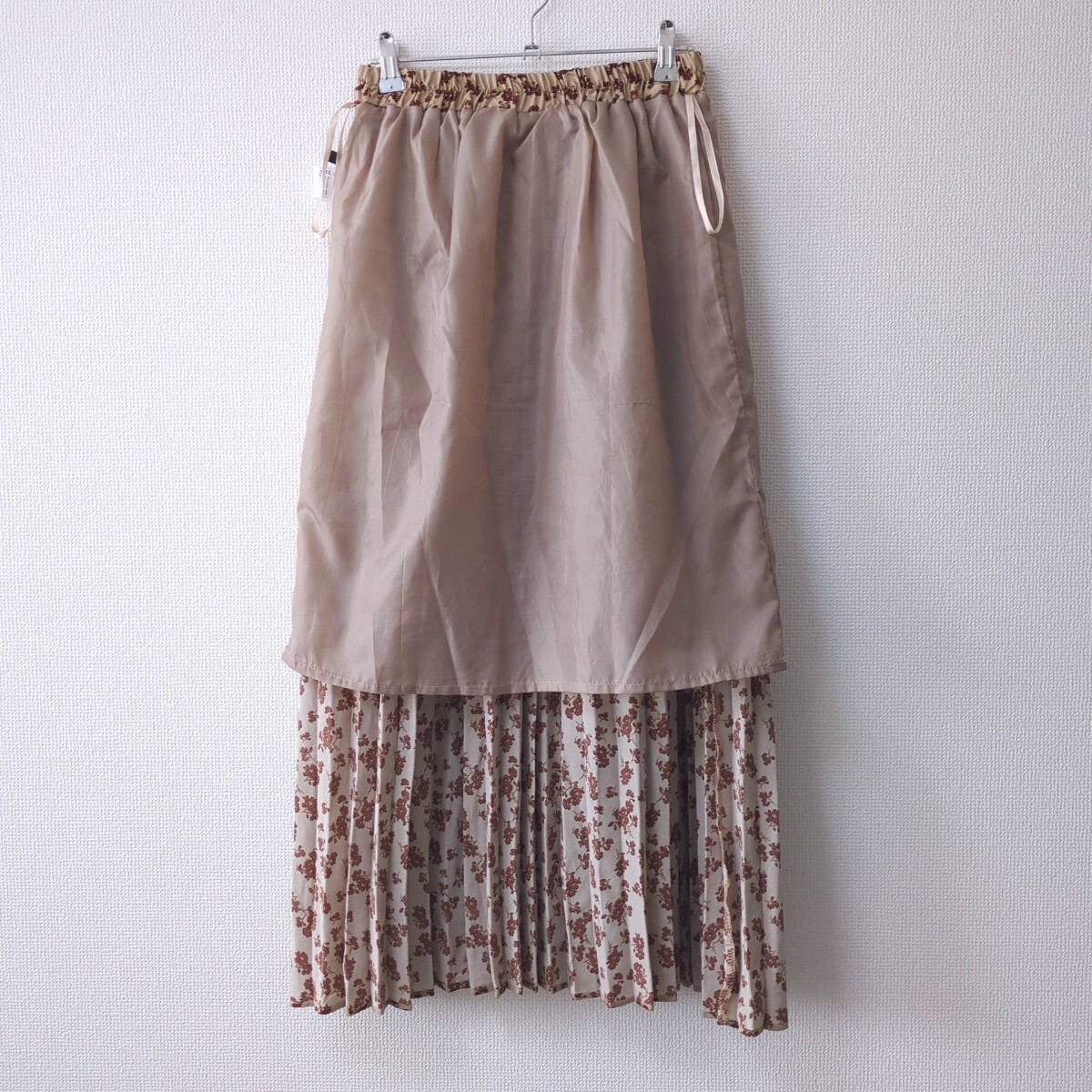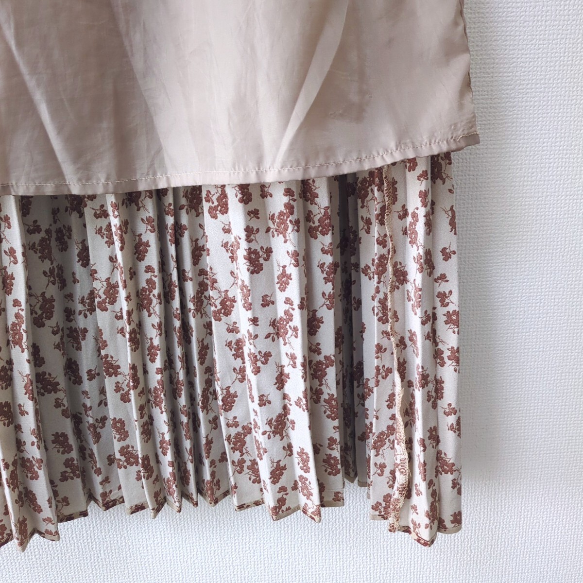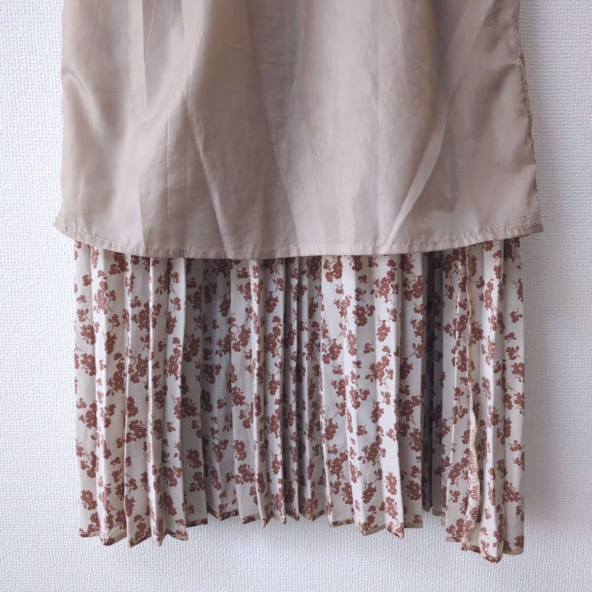 美品 Zunus 小花柄ロングスカート レディースフリーサイズ ベージュ