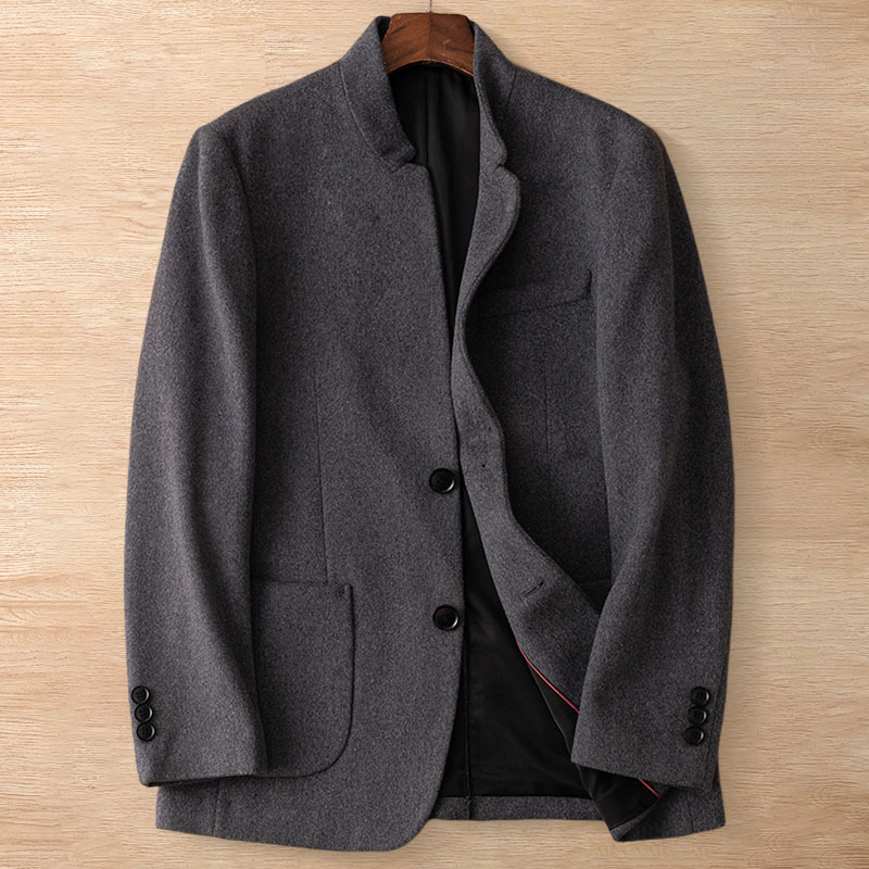 Y6294-M ダークグレー 新品 ウール混 ステンカラーコート 暖かさ 秋冬 防寒 メンズ ショートコート ラシャコート アウター トップス