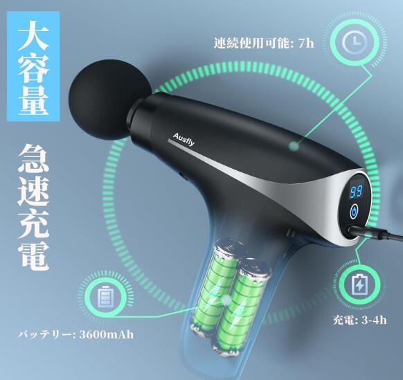 【2025新登場】Ausfly 筋膜リリースガン ハンディガン 6段階強力振動 5種類アタッチメント付属 シリコン製 3600mAh大容量 400g