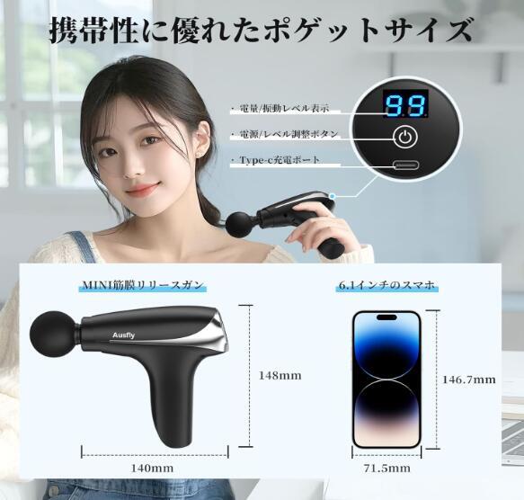 特徴 速度制御、タイマー、シリコン素材のヘッド、 静音、Type-C充電式、急速充電、軽量、持ち運び便利、 豪華収納ケース