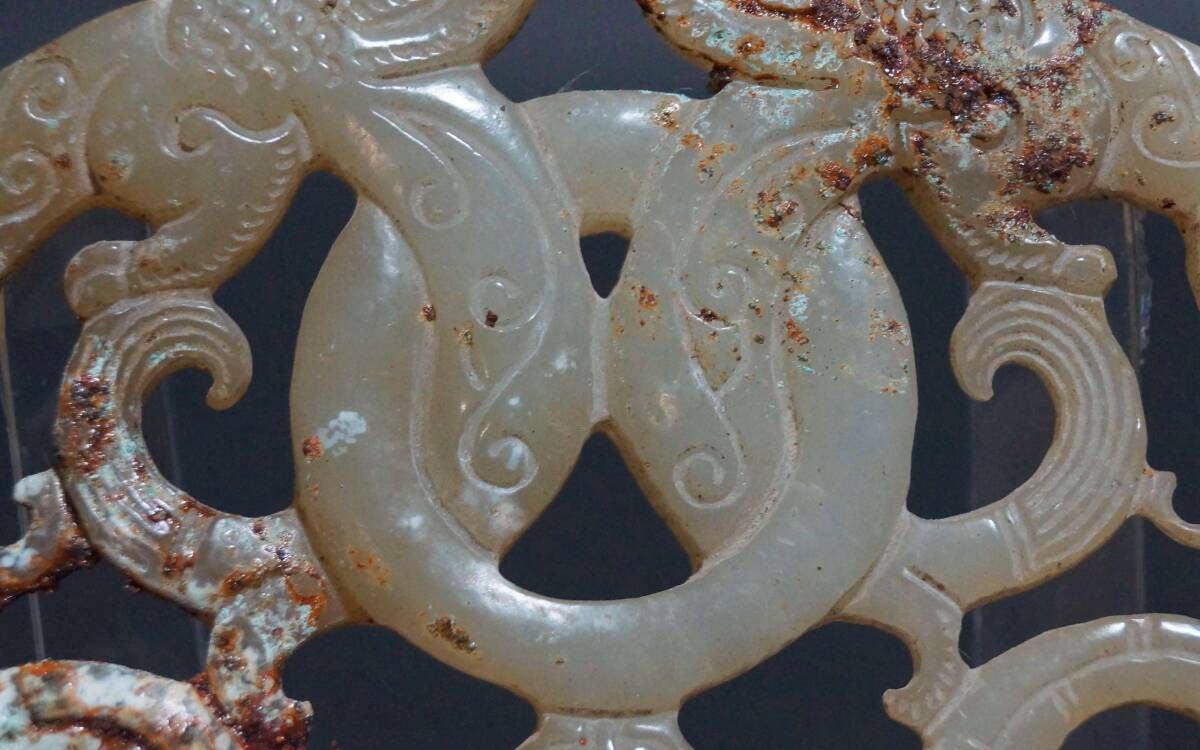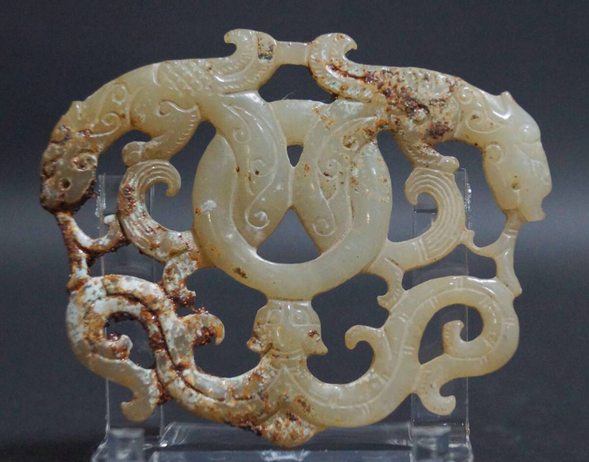 古玉 和田玉(ホータン)細工透かし彫り『獣』根付 緒締玉 玉佩 提げ物 装飾品 幅7.5cm☆美しい石目☆時代物☆7D0821 サイズ(約): 幅7.5㎝、高さ6.1cm、厚さ0.6cm、重さ31g |