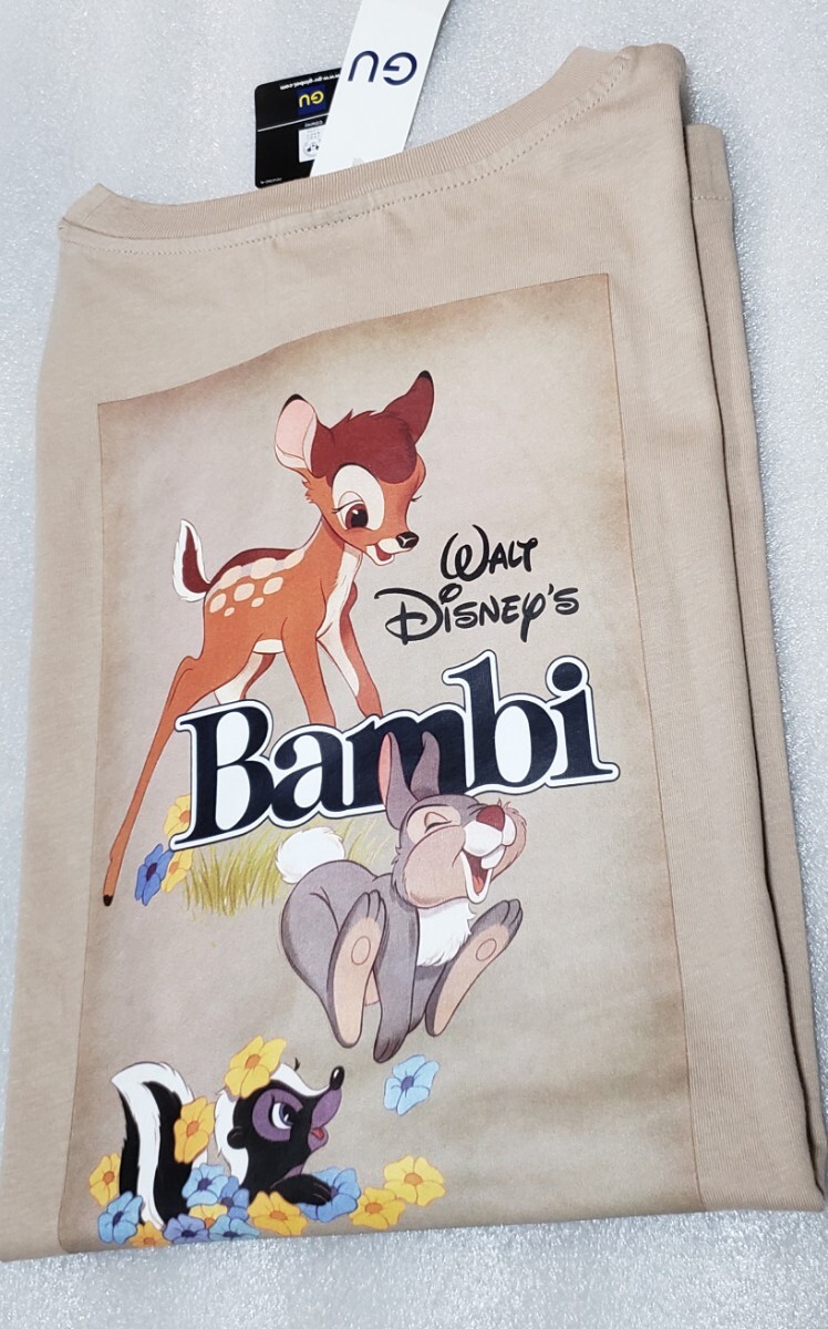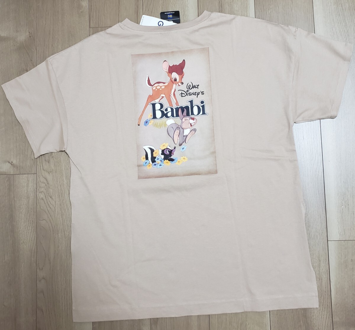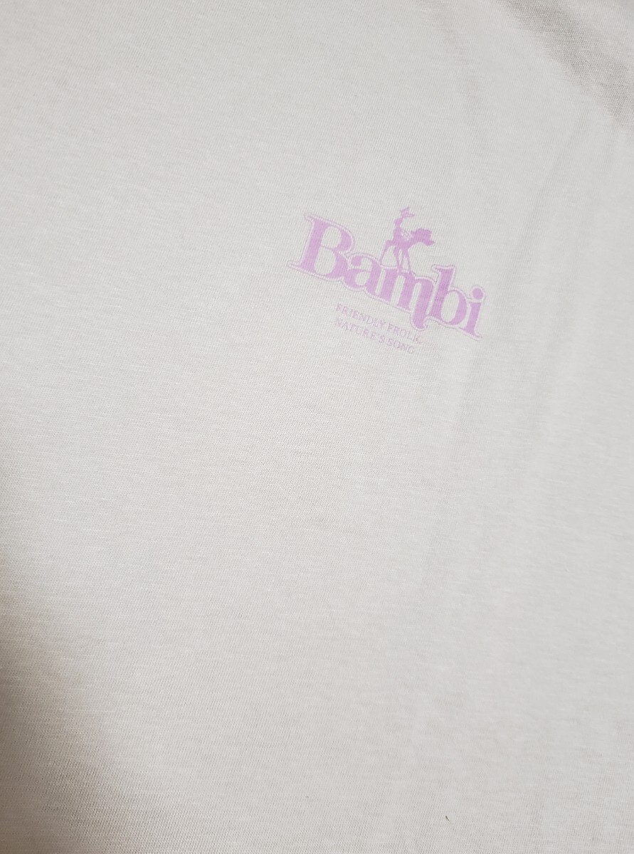 背中にバンビ、ウサギのとんすけ、スカンクのフラワーがプリントされています。