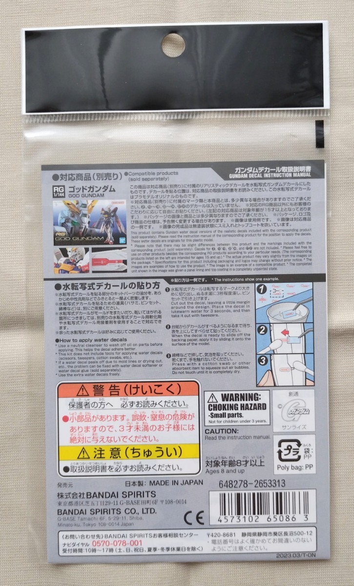 【未使用】バンダイ 水転写式 ガンダム デカール 1/144 RG ゴッドガンダム 138