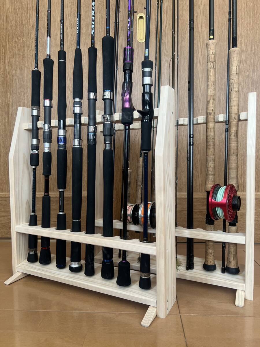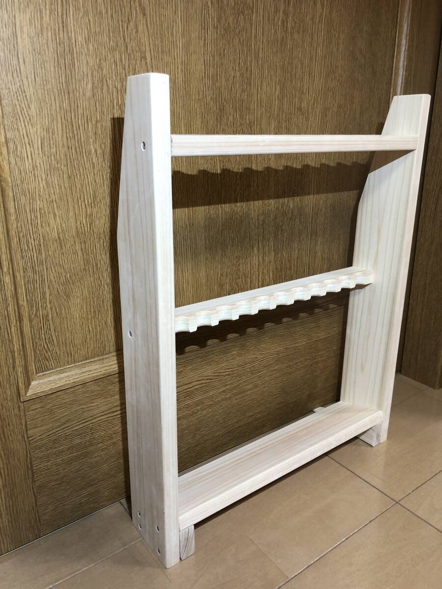 素材にこだわった国産ヒノキ製のロッドスタンドです。