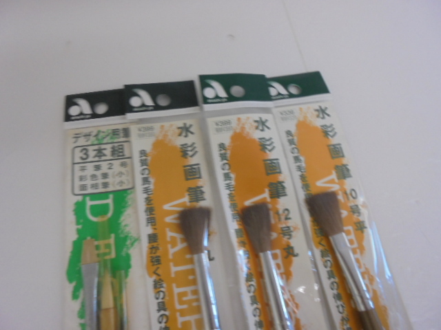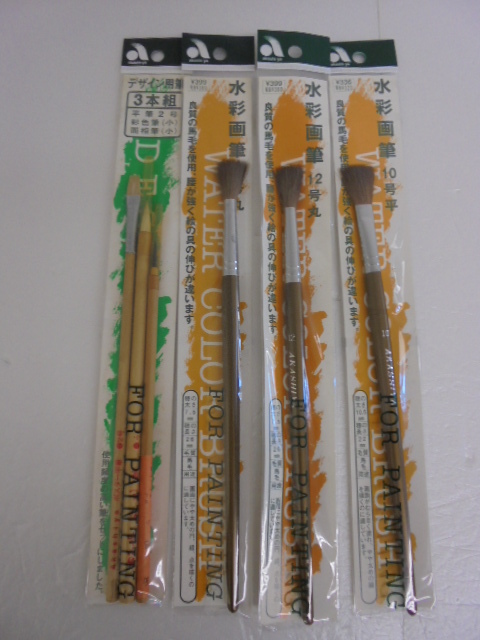【KCM】1pbg-88-4s★未使用品【あかしや】絵筆 6本セット 水彩画筆(丸筆12号×2/平筆10号)デザイン用筆(平筆2号・彩色筆小・面相筆小)
