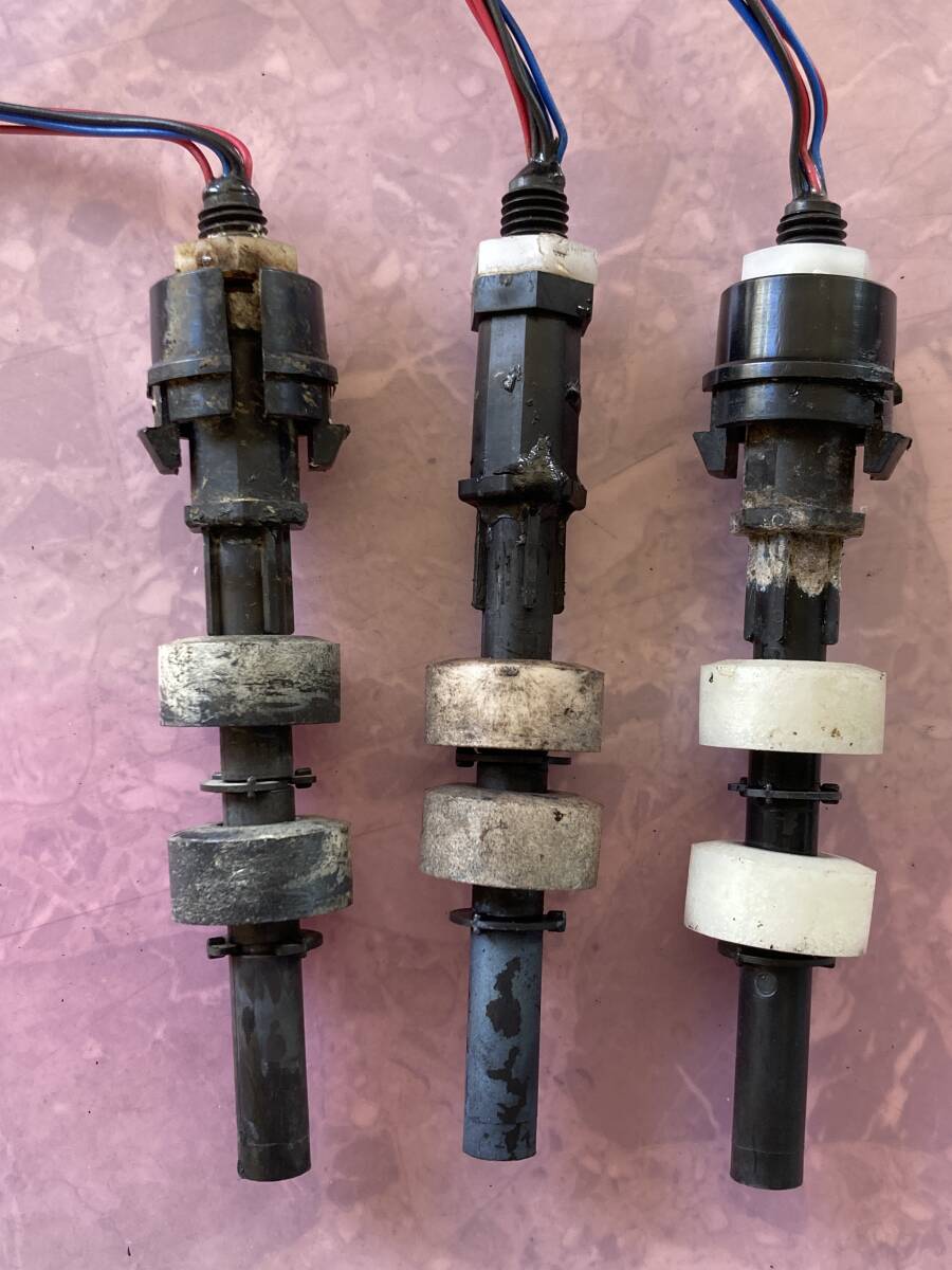 倉庫整理で出てきました。 以前使用していたミニラボ用のスペアパーツです。ノーリツミニラボプリンター QSS-3501iの使っていたフロートスイッチです。CD、BF、STB用各1個の3個セットです。多分一部の機種と共用できると思いますが、他の機種に使用できるかはコールセンターで確認してください。メーカー在庫払底部品だと思います。2年ほど前まで稼働していた機械のものです。問題なく使えていましたが、動作確認ができませんので現状渡しとなります。CD用の固定爪がありませんので、お使いのミニラボのものを使ってください。簡単に清掃しましたが、お使いになる前に再度清掃をお願いします。QSF-V30J,QSS3001J,QSS3501iの未使用パーツが少し残っていましたので、少しずつ出品を予定しています。使わなくなって数年経っていますが本体も残っていますのでメーカー在庫が無いパーツでお役にたてるかもれません。(基盤は知識がないので対応できませんが)