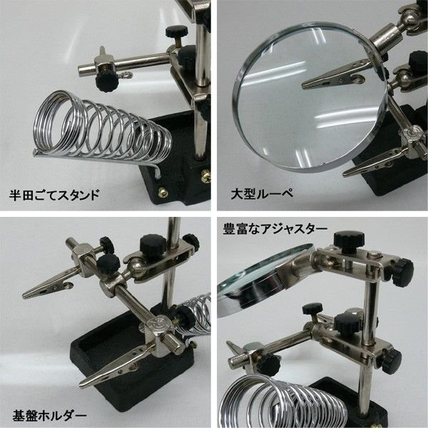 基盤ホルダーと大型ルーペが付いているので細かいハンダ付け作業が快適に!