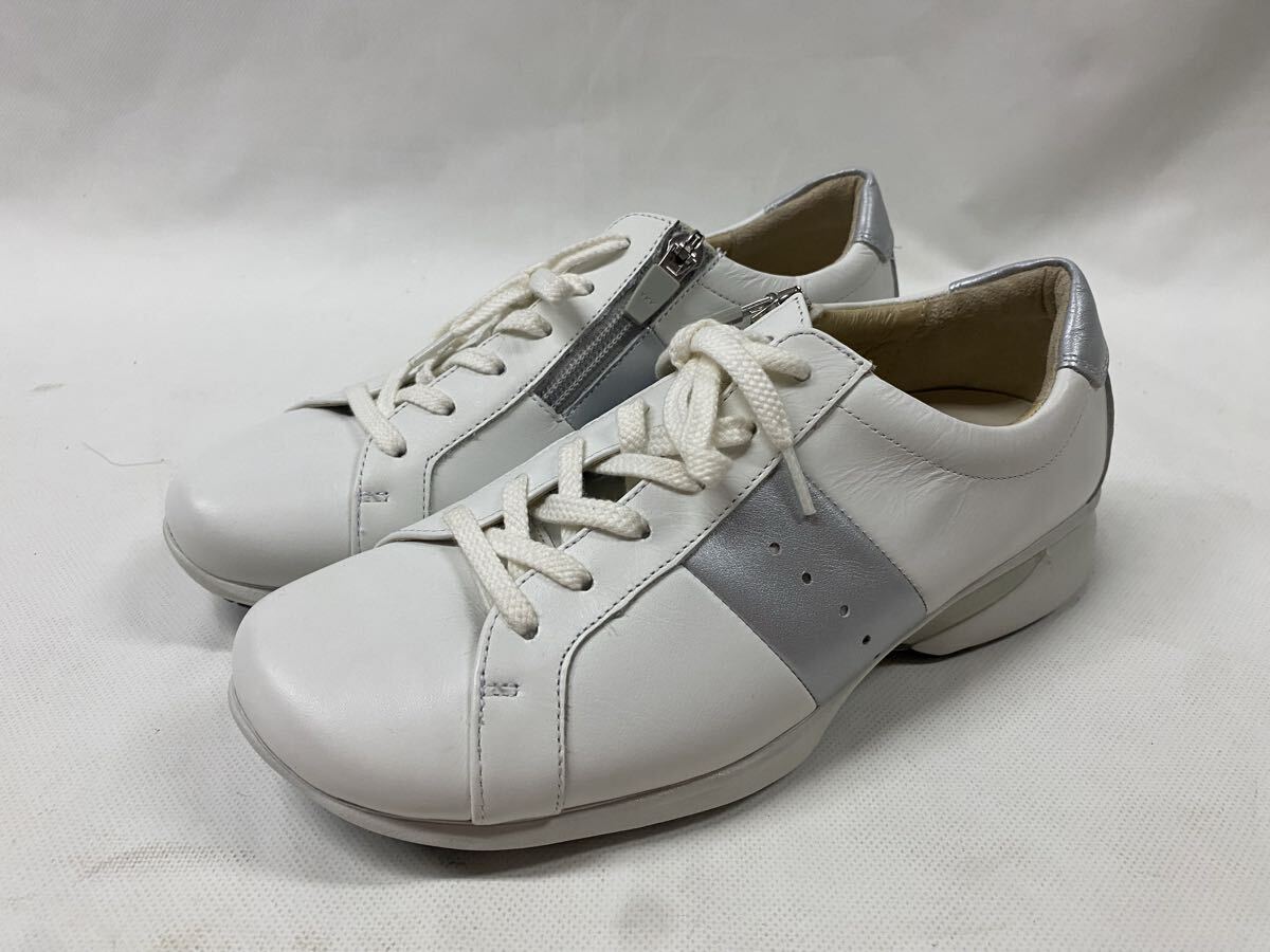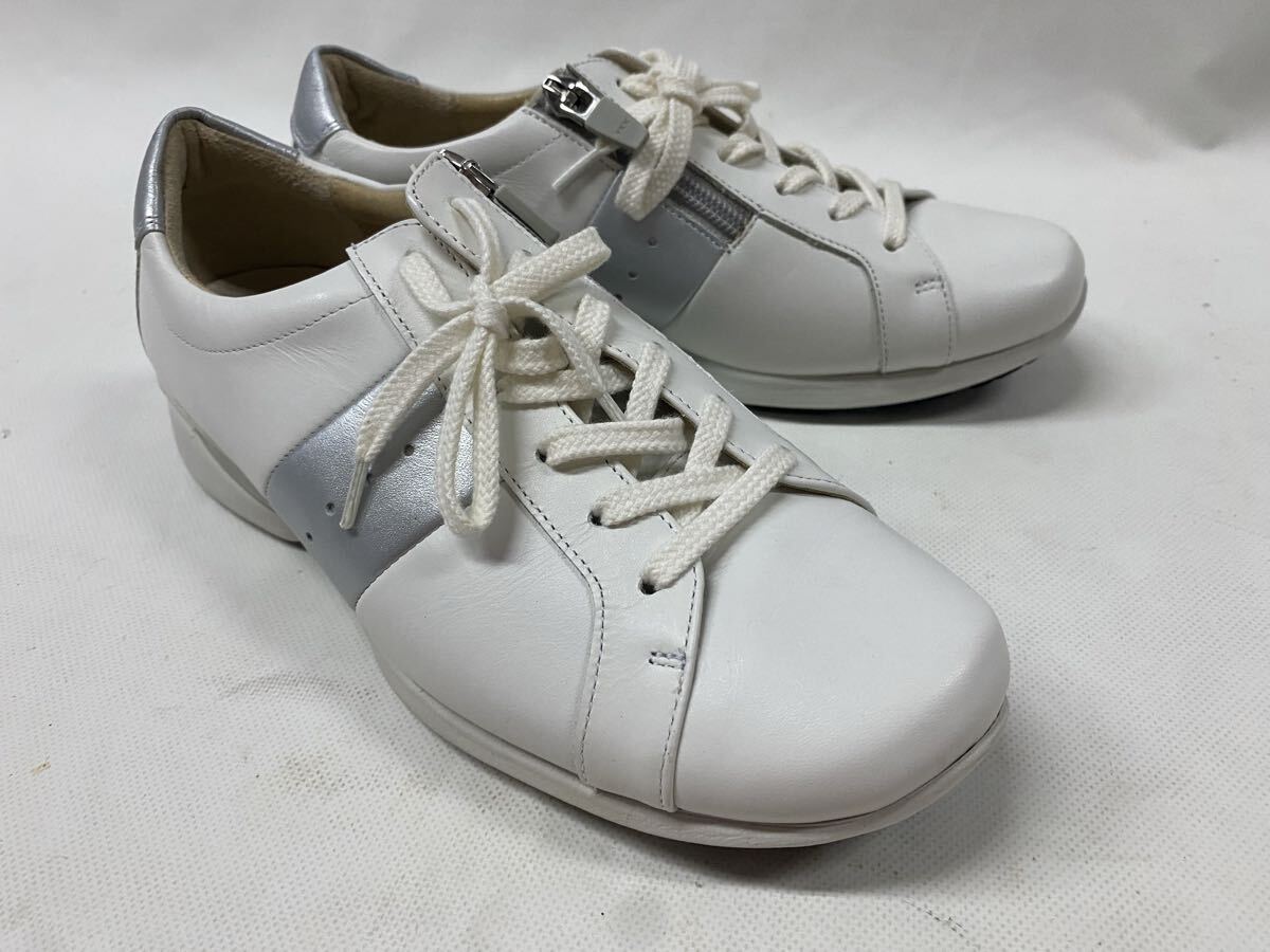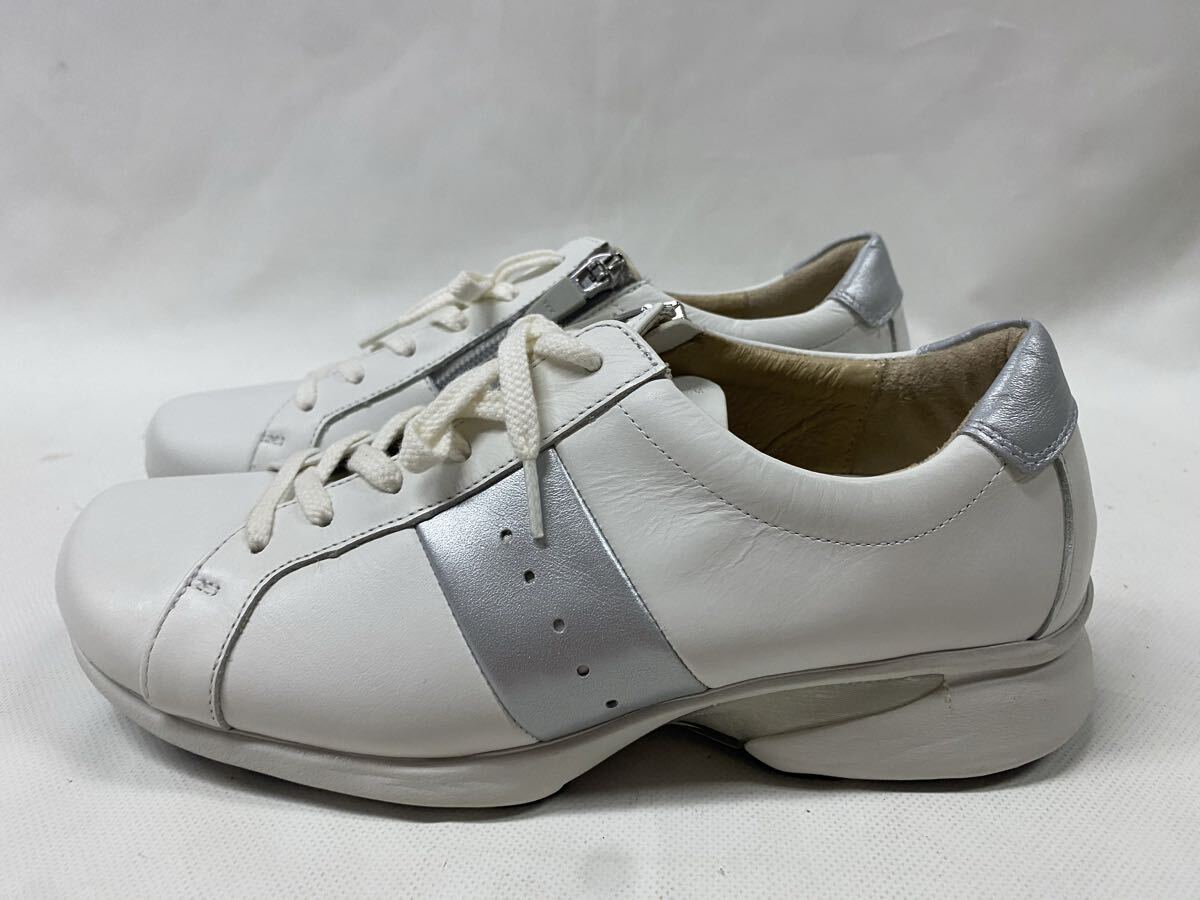 美品 アシックス ペダラ 22cm サイドジップ レザー スニーカー 白 ホワイト
