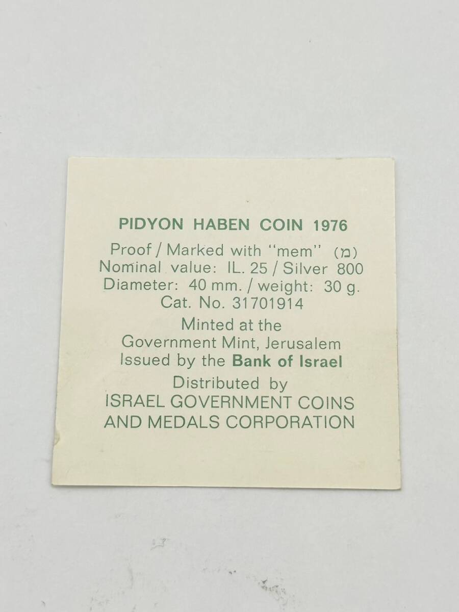 (338)1976年 ピディオン ハベン イスラエル 25リロット銀貨 銀 コレクション 800/1000