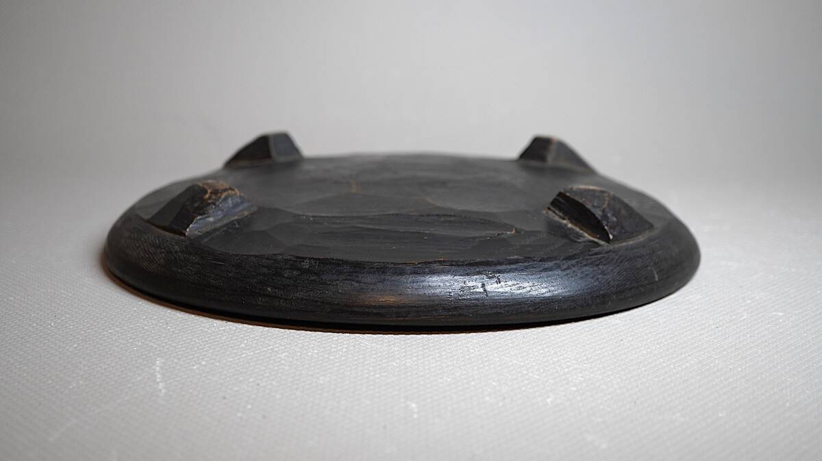 栗材の一枚板をはつり、削り出して作られたお盆で、裏の四つ脚も刳り出されています。