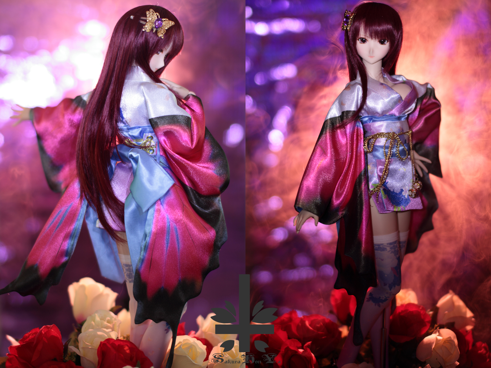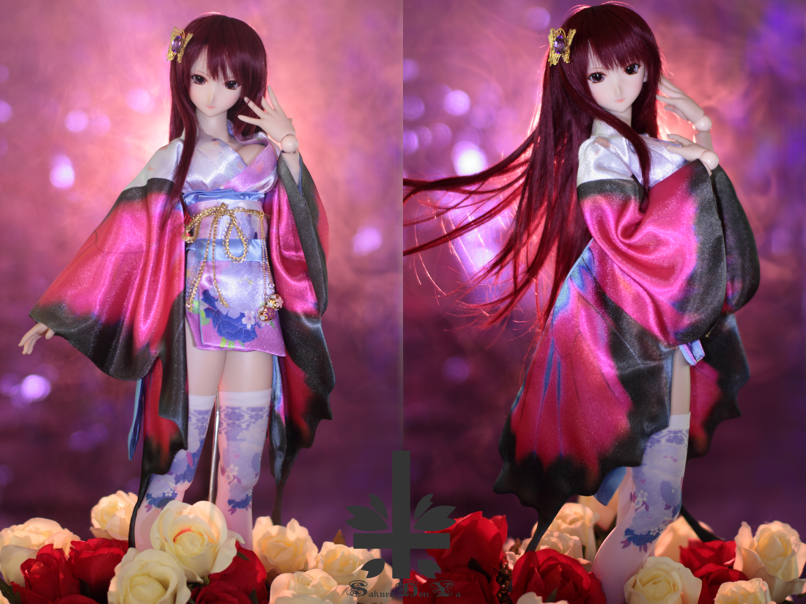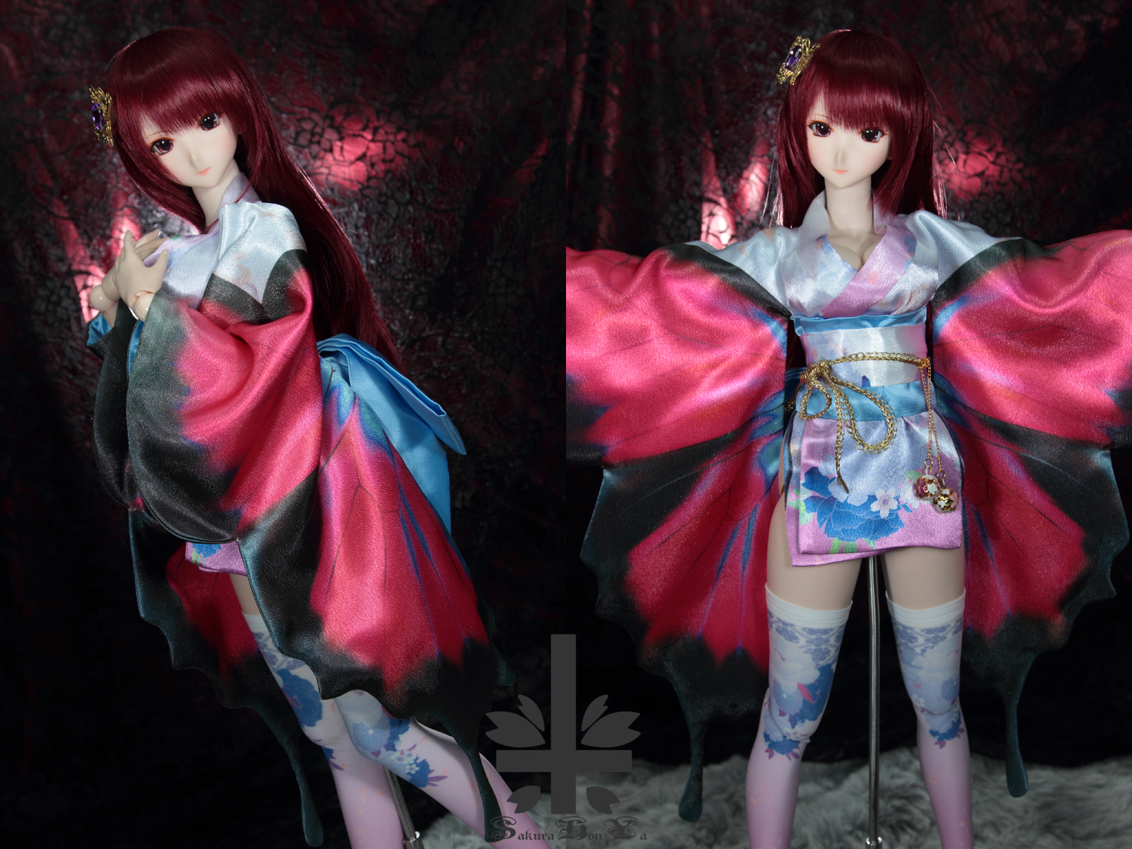| * 商品説明 * ご覧頂き ありがとうございます。 「桜本屋」 華麗短い和服《時雨凛蝶。緋》 ドルフィードリーム DDdy / S / M / L 胸 どちらにも着せ付けていただけます。 セット内容: ●靴下の裏は白です。