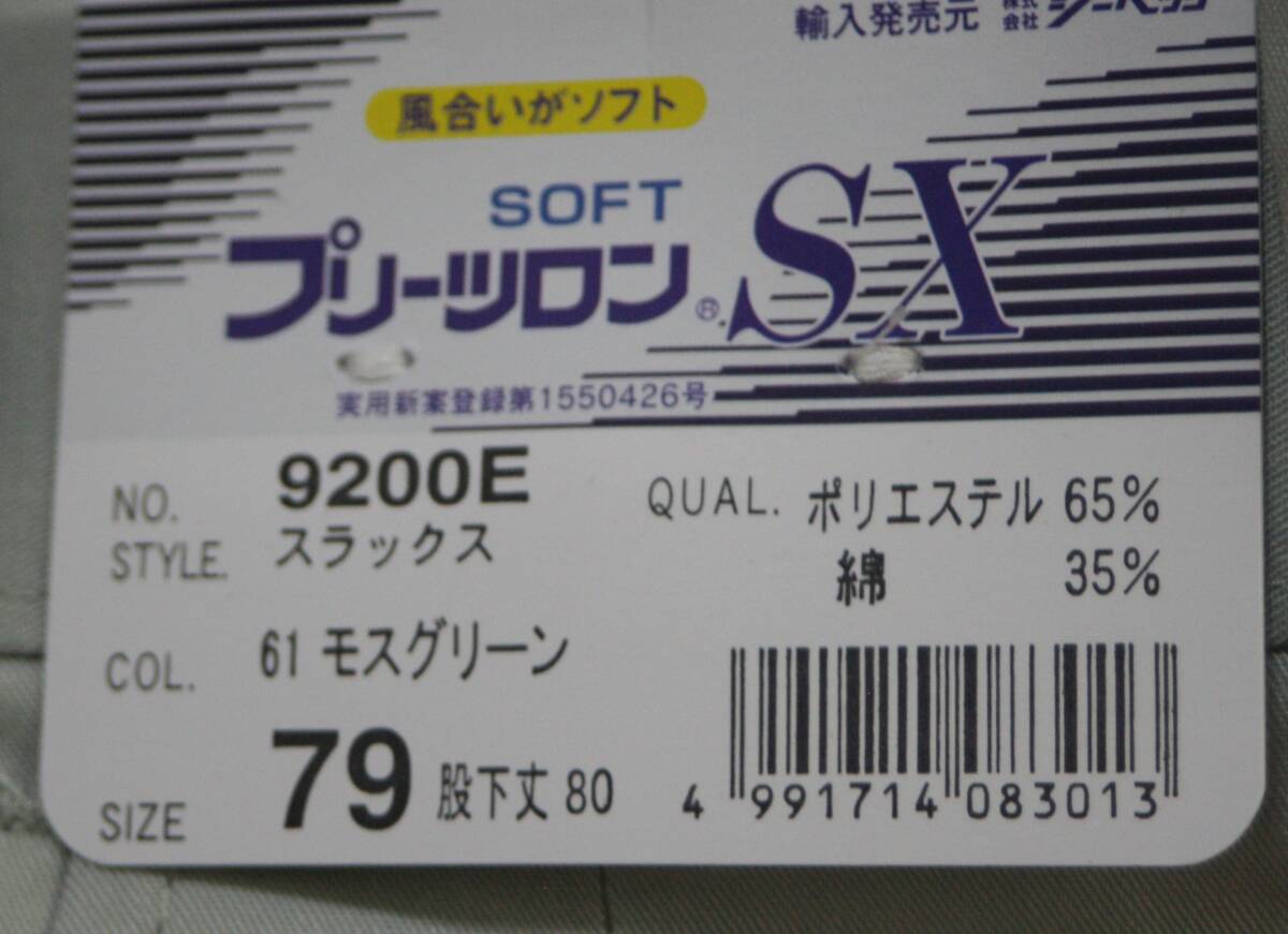 ②★未使用 シーベック XEBEC スラックス プリーツロンSX 9200E モスグリーン サイズ79 股下丈80 作業服 ボトムス★