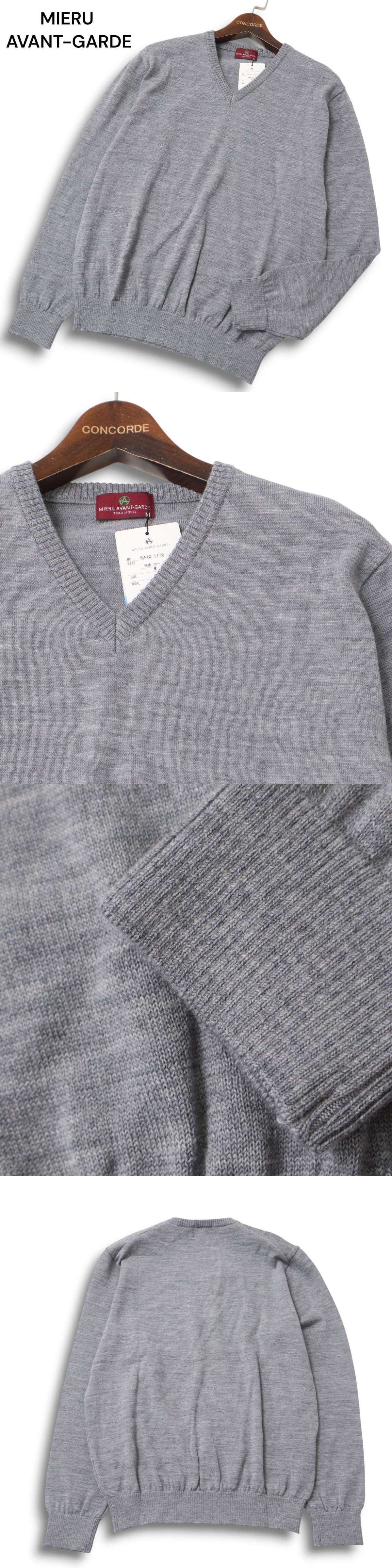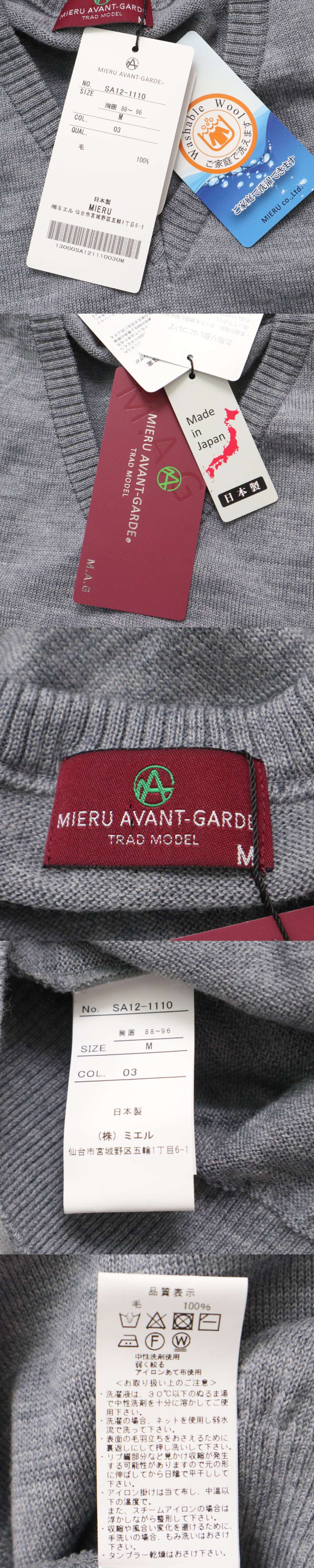 【新品 未使用】 MIERU AVANT-GARDE ミエル 秋冬 ウール100%★ Vネック ニット セーター Sz.M メンズ グレー 日本製