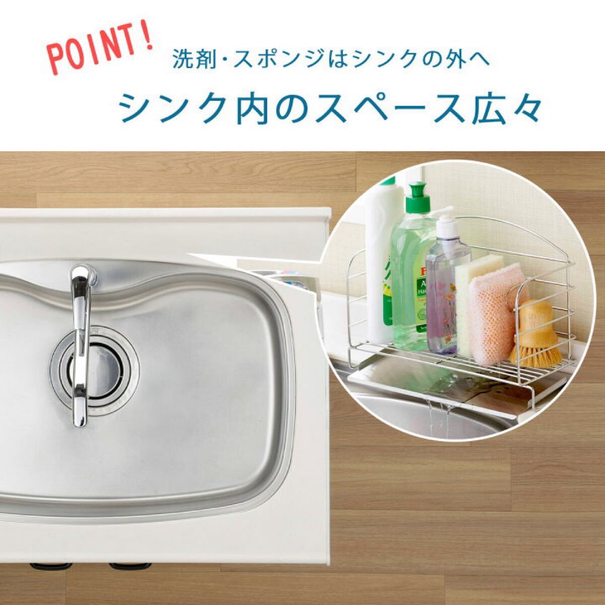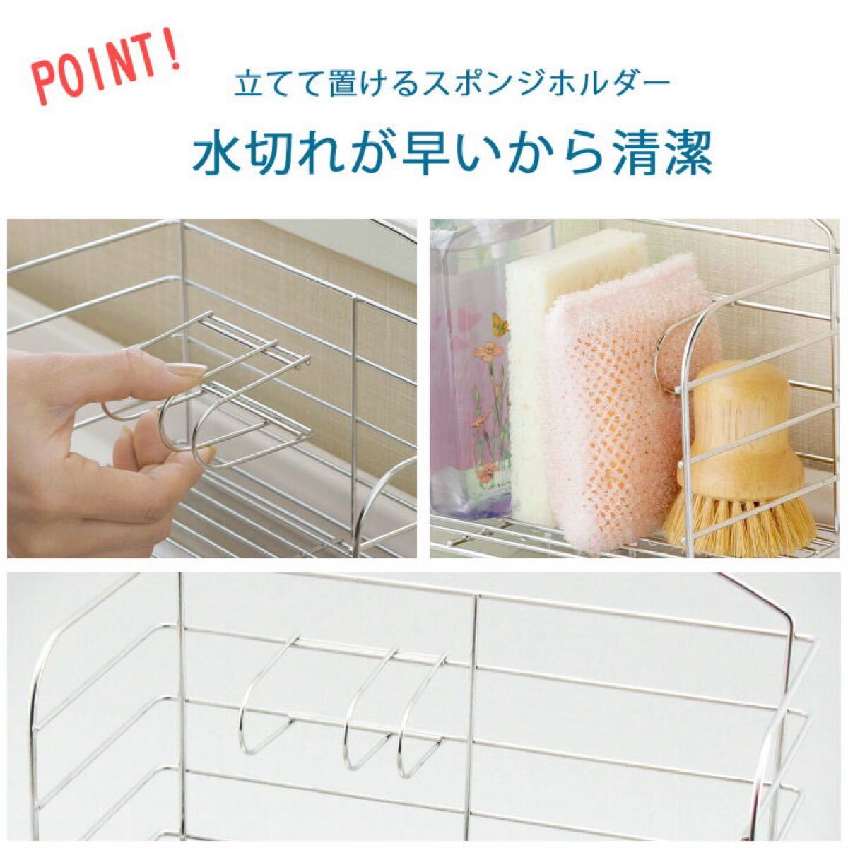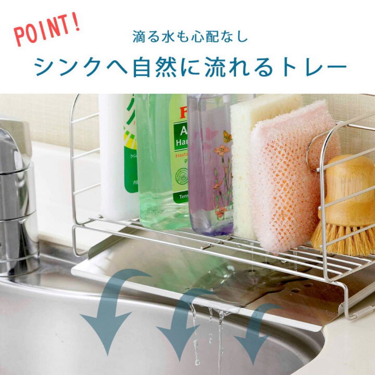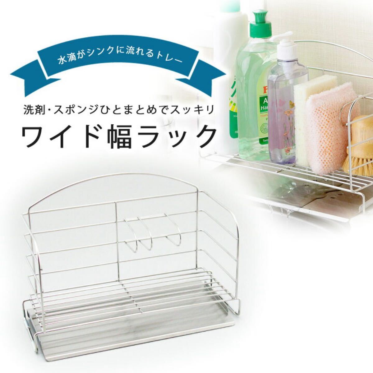洗剤 スポンジラック ワイド 斜めトレー 日本製 ステンレス シンクラック 丈夫 清潔 流れるトレー スッキリ 洗剤ラック スポンジ 水が流れる燕三条 ツバメ 国産